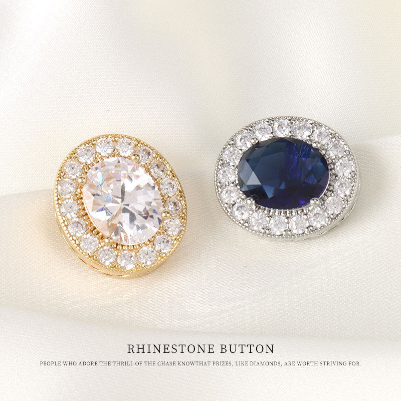 16mm luksuzni ovalni gumb od bijelog i safirno plavog cirkona - gumbi za kapute, džempere i vanjsku odjeću, dekorativni gumbi, gumbi za krzno nerca, pakiranje od 4 komada (2 boje)