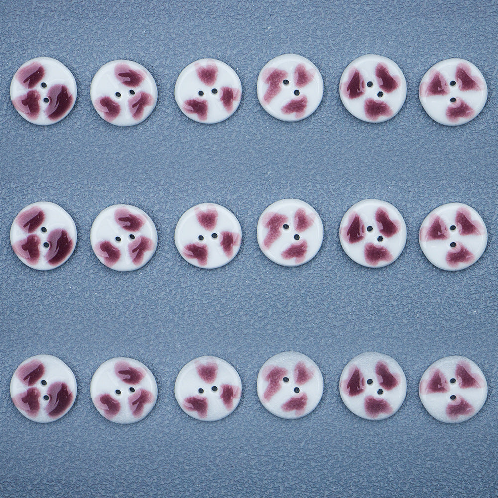 16mm okrugli 2 rupe ručno oslikani ljubičasto crveni gornji uzorak keramički gumbi 6 komada