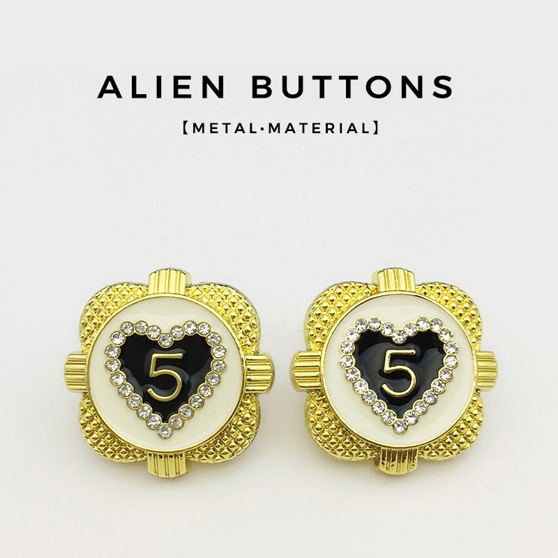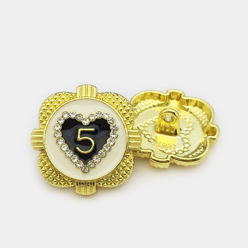 Unaprijedite svoju garderobu s našim gumbima od zlatnog metala veličine 17,5/22,5 mm u obliku srca ukrašenim dijamantima. Ovi gumbi imaju šarmantan dizajn srca, ukrašen blistavim dijamantima koji dodaju dašak elegancije i sofisticiranosti svakom odjevnom predmetu. Izrađeni su od visokokvalitetnog metala sa zlatnim premazom, savršeni za jakne, kapute i pletenu odjeću. Sa svojom izdržljivom konstrukcijom i upečatljivim dizajnom, ovi gumbi su idealan izbor za one koji cijene tradicionalnu izradu i jedinstvene modne dodatke.