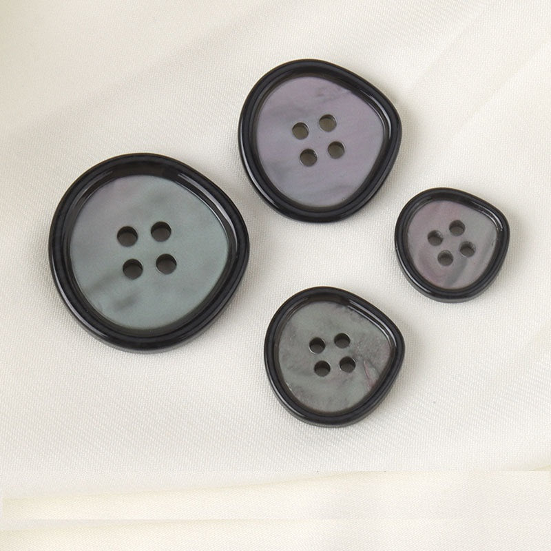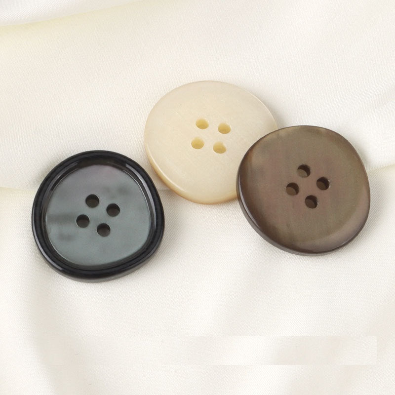 Ovi gumbi od smole, veličine od 17,5 do 30 mm, imaju elegantan dizajn u obliku kapljice vode i dostupni su u crnoj, bež i smeđoj boji. Jedinstveni oblik kapljice vode dodaje dašak sofisticiranosti i mekoće tipično formalnom izgledu sakoa.