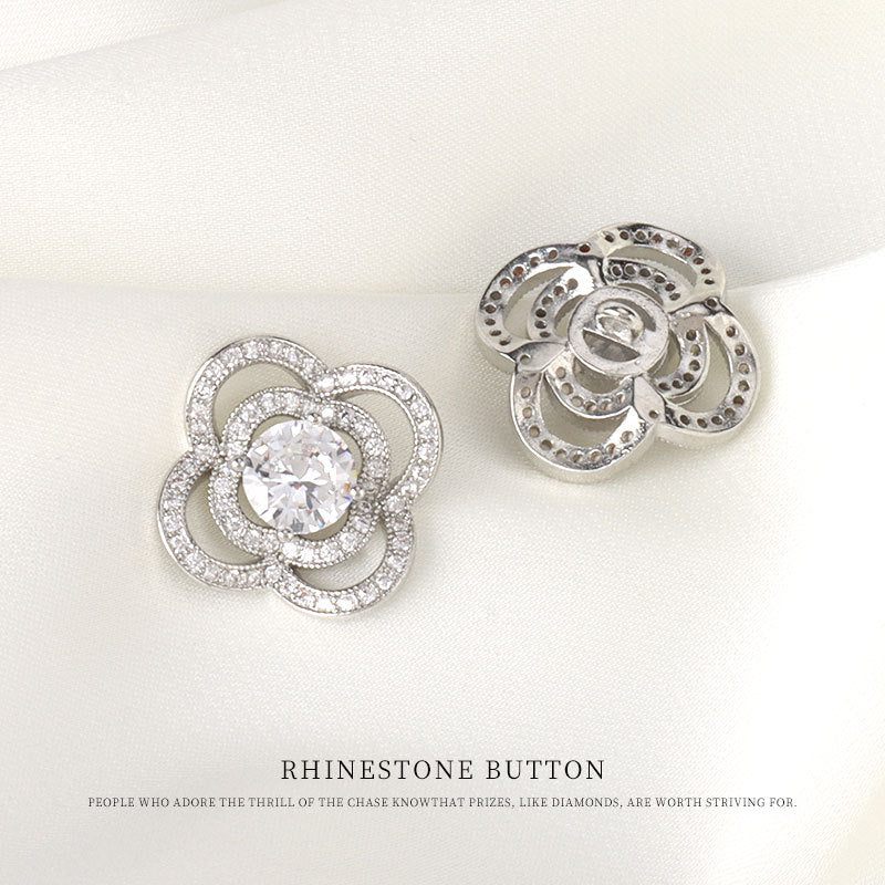 Klasični gumb s cirkonom u obliku djeteline s četiri lista veličine 17,5 mm s metalnim držačem - Izvanredan dodatak za ženska odijela i džempere, 2 komada