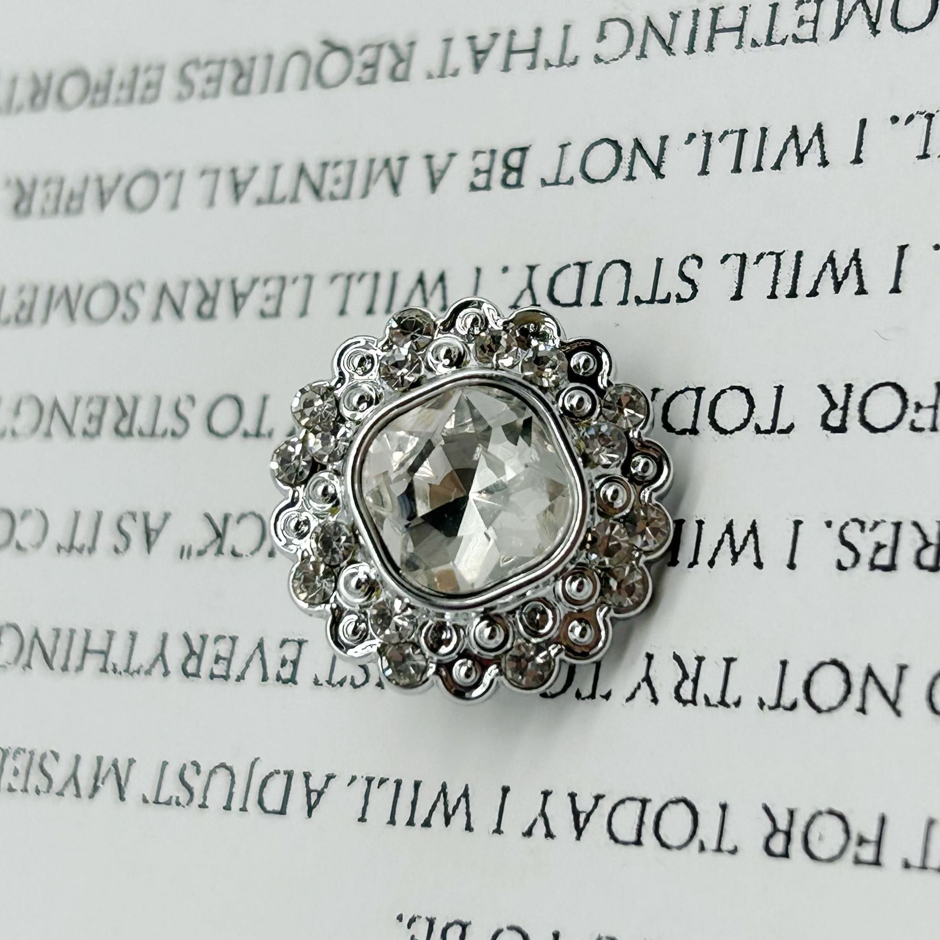 Ovi gumbi dolaze u tri veličine: 18mm, 21mm i 25mm. Imaju luksuzan dizajn cvijeta s pozlatom, posrebrenjem ili elektropletiranjem u boji gunmetala te su ukrašeni blistavim dijamantima, dodajući dašak glamura i sofisticiranosti. Priloženi držači čine ih prikladnima za razne primjene. Idealni su za formalnu odjeću poput večernjih haljina, odijela ili modnih dodataka visokog ranga. Kvalitetna plastična konstrukcija osigurava izdržljivost uz lagani osjećaj. Njihov upečatljiv izgled može poboljšati ukupnu eleganciju i stil bilo kojeg odjevnog predmeta ili dodatka, čineći ih neizostavnim za one koji traže dašak luksuza u svojim modnim kreacijama.