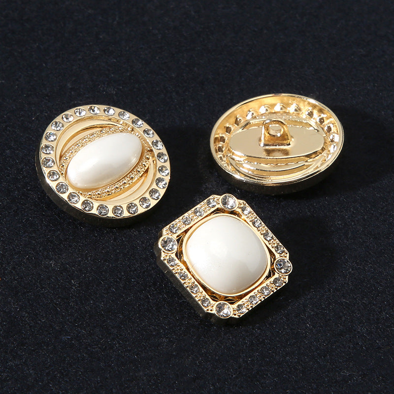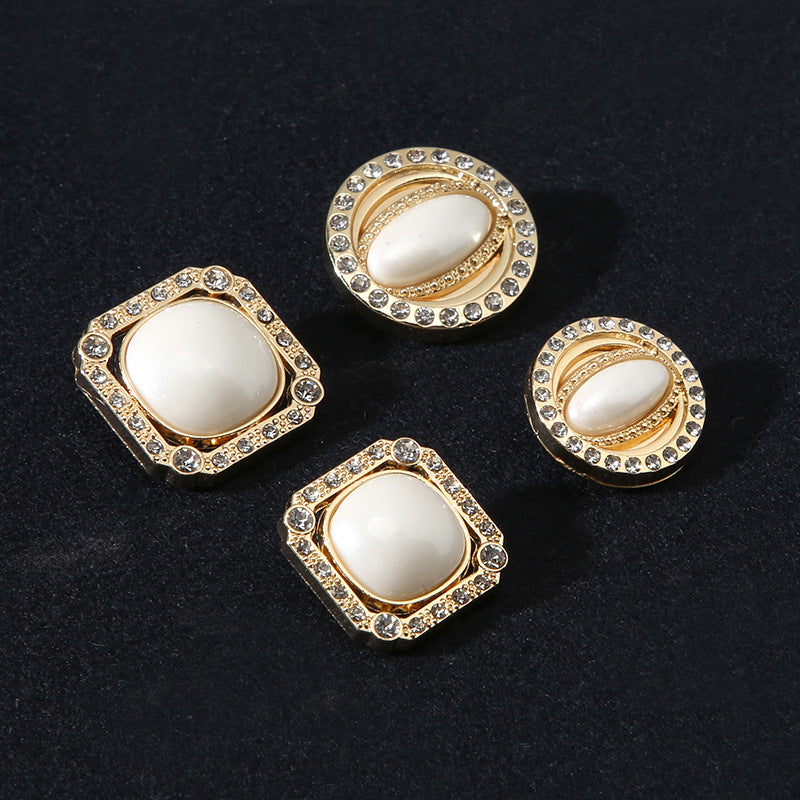 18/21mm Kvadratni i Okrugli Vrhunski Zlatni Metalni Gumbi s Cirkonima i Biserima, s Nogicama 10 kom