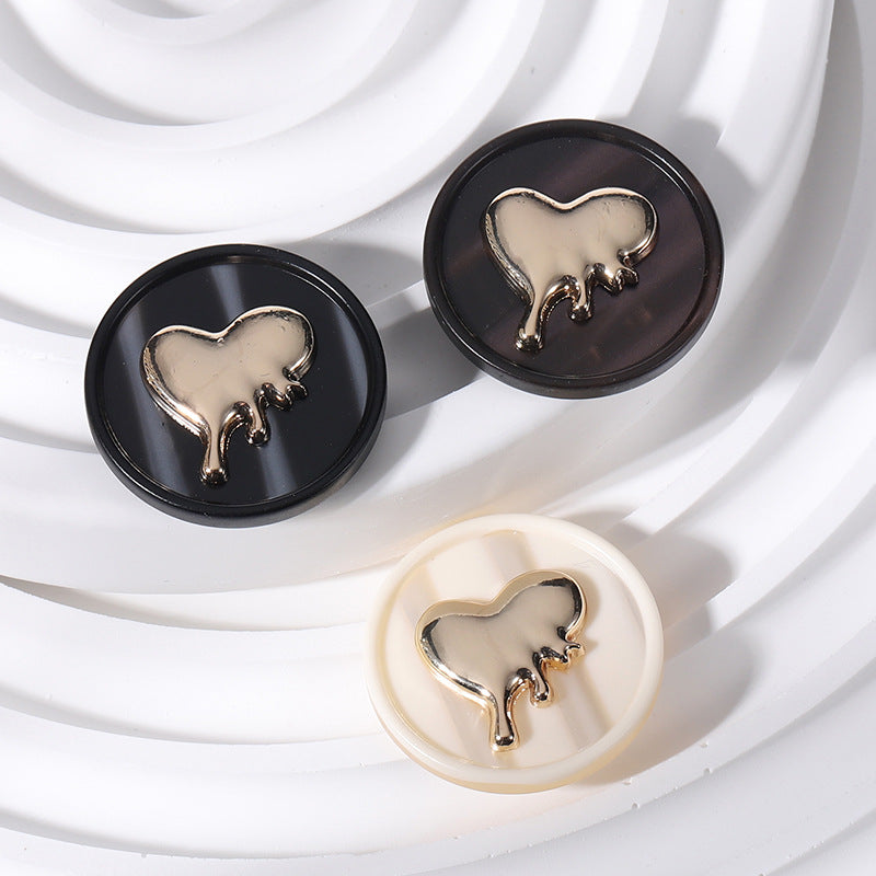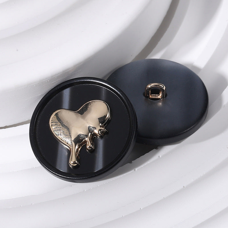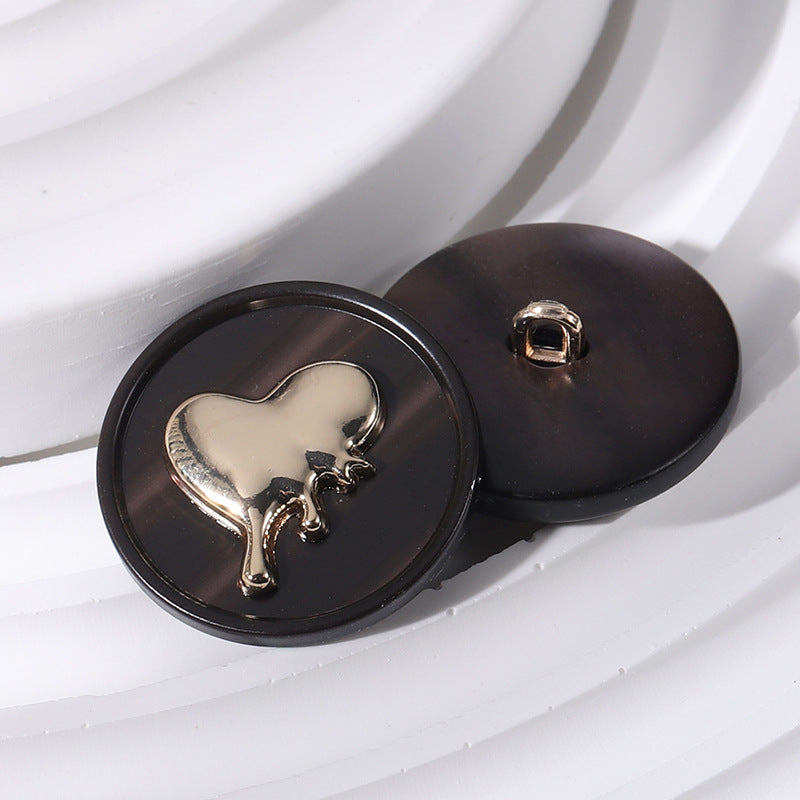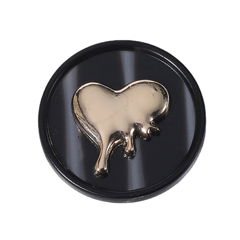 Ovi okrugli gumbi od smole i metala u obliku srca veličine 18-25 mm šarmantan su i jedinstven dodatak svakom projektu. Kombinacija smole i metala daje ovim gumbima prekrasnu teksturu i izdržljivost.