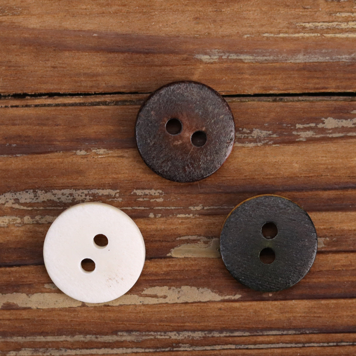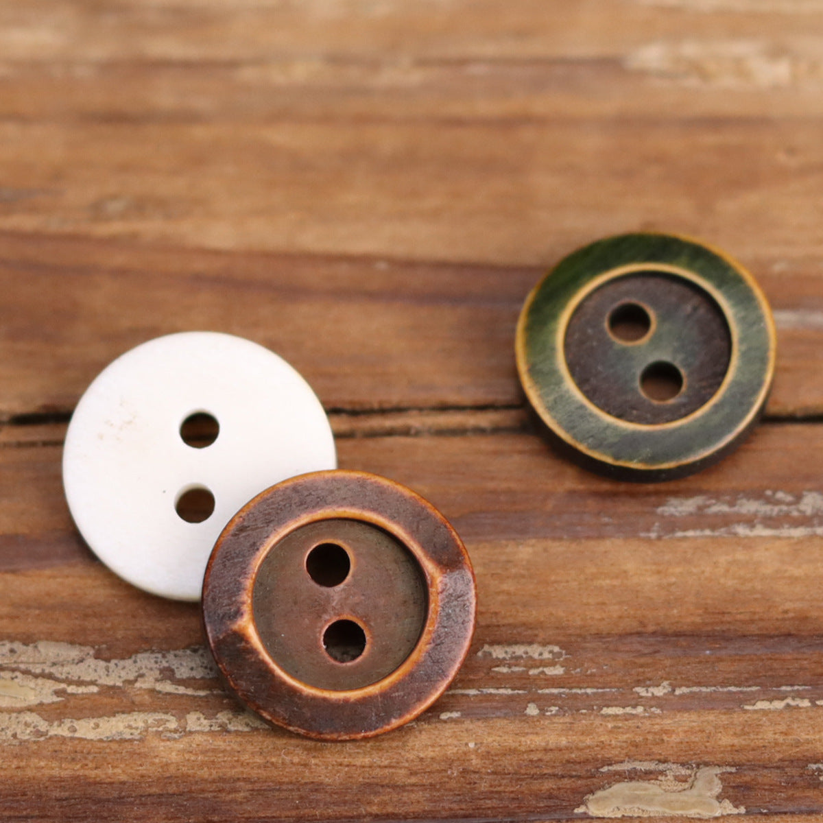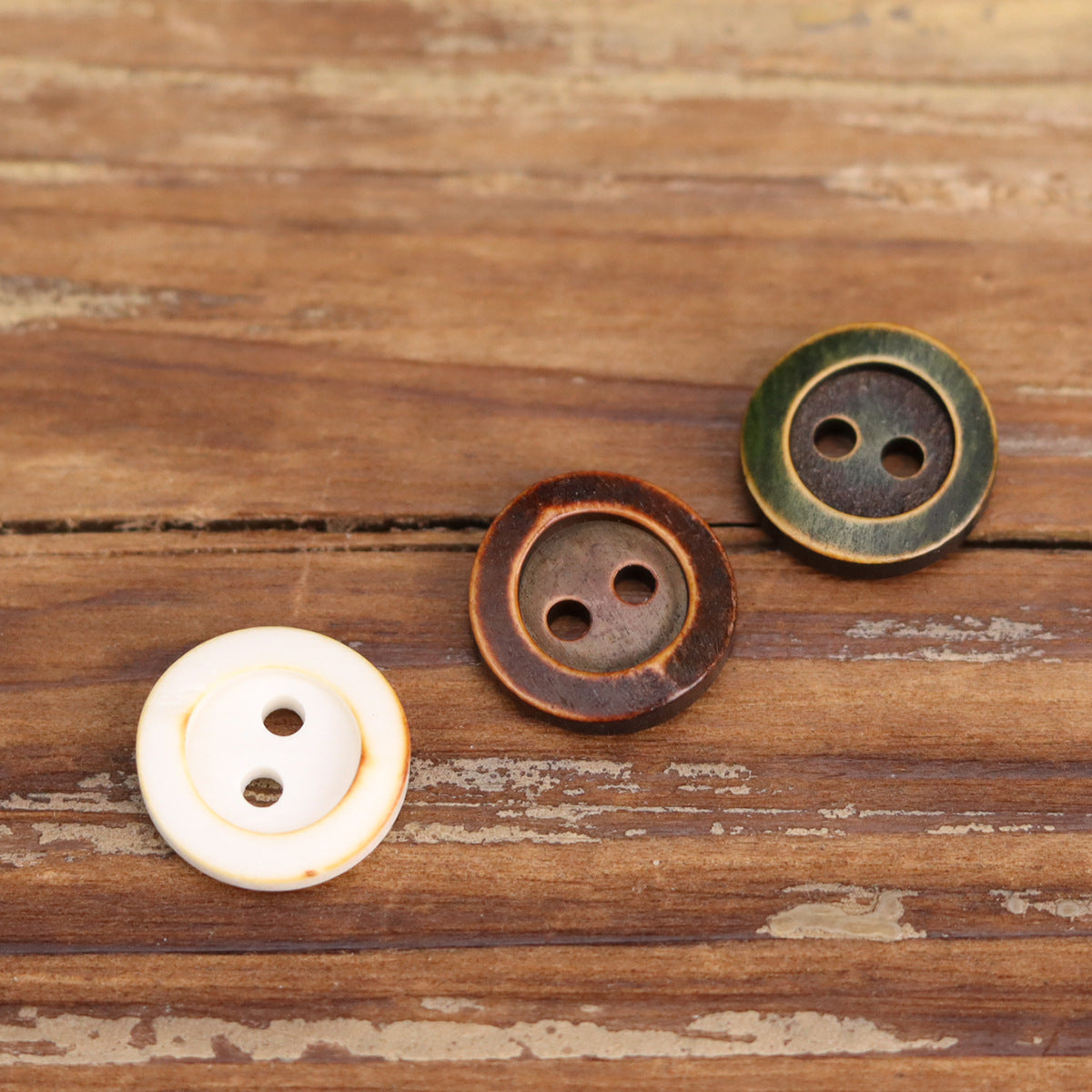 Ovi 18L pravi gumbi od goveđe kosti za košulje jedinstven su i stilski dodatak svakoj garderobi. Dostupni u boji crvenkasto-smeđe, bijele i vojne zelene, svaki gumb ima izbrušeni završetak i dva otvora za karakterističan retro izgled. Izrađeni od prave goveđe kosti, ovi gumbi nude prirodnu ljepotu i izdržljivost koju sintetički materijali ne mogu nadmašiti. Oštećeni završetak daje im starinski šarm, savršen za dodavanje vintage stila košuljama, bluzama i drugim odjevnim predmetima. Neka ovi prekrasni gumbi budu vrhunac vaše odjeće i unesu dašak nostalgije u vaš stil.