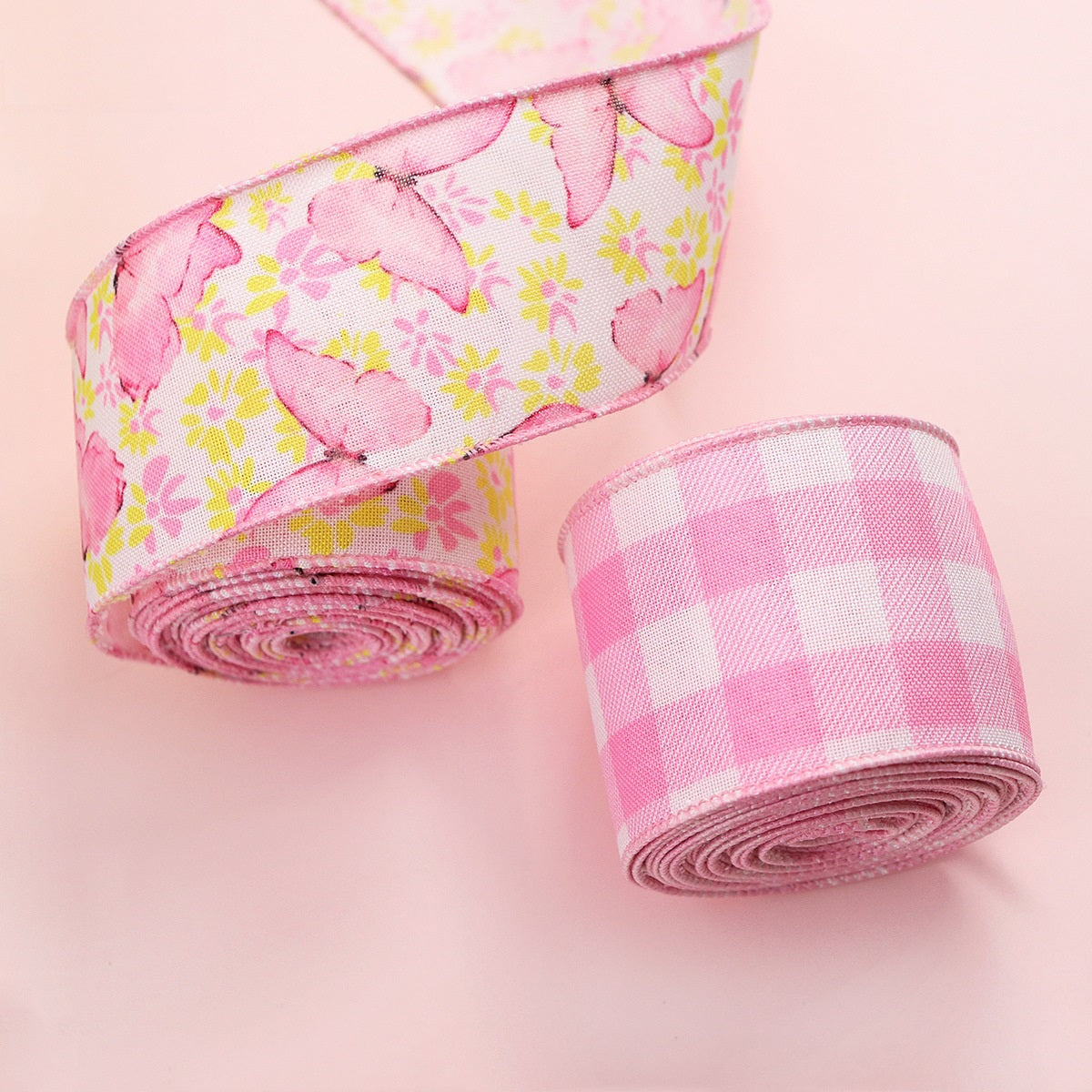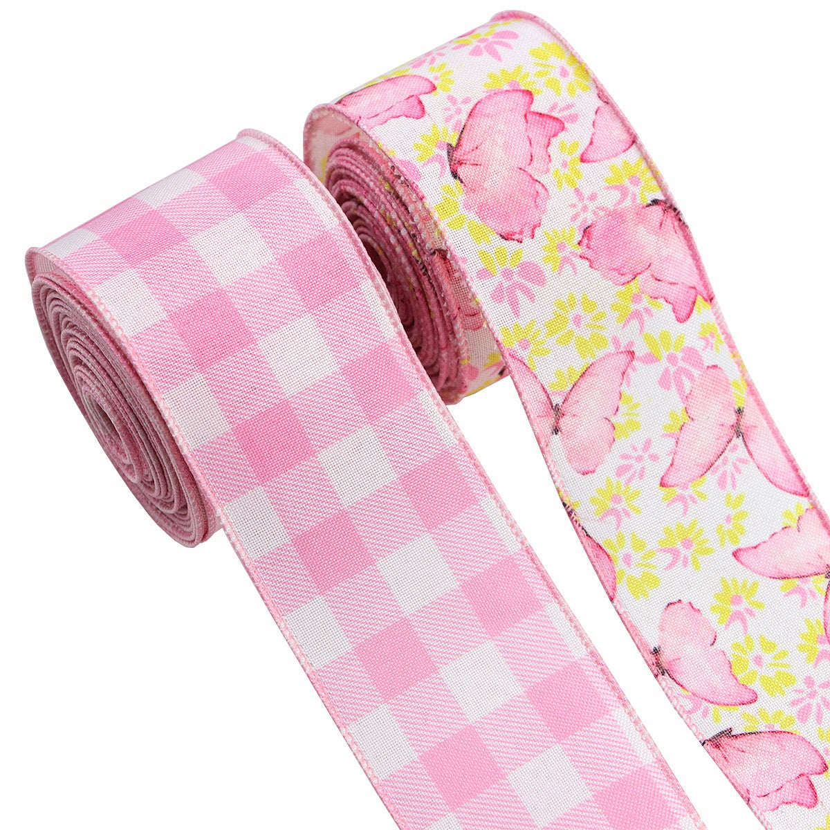 2.5 Inch Roza Kockasti Leptir Žičani Rub Traka 2 Pakiranja