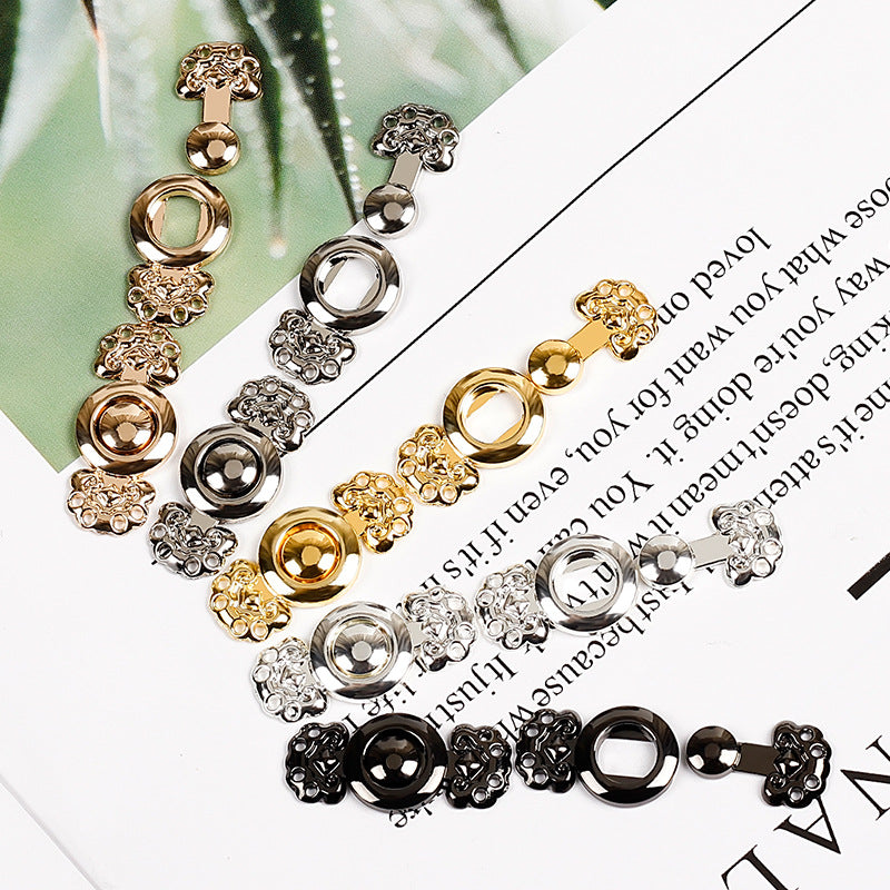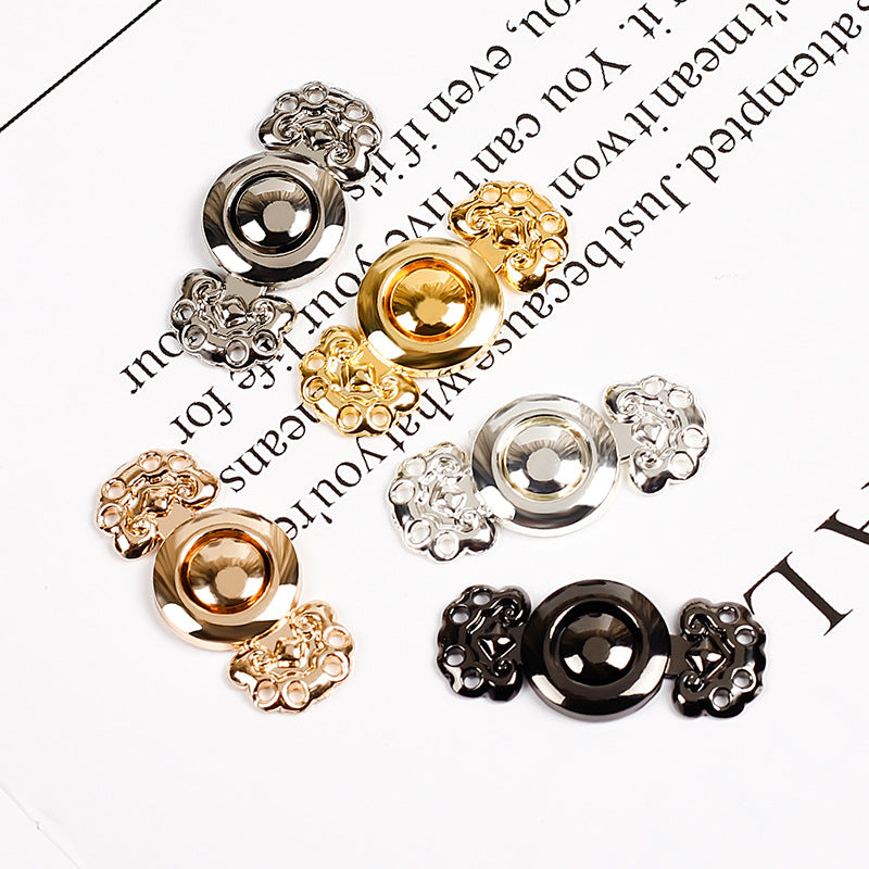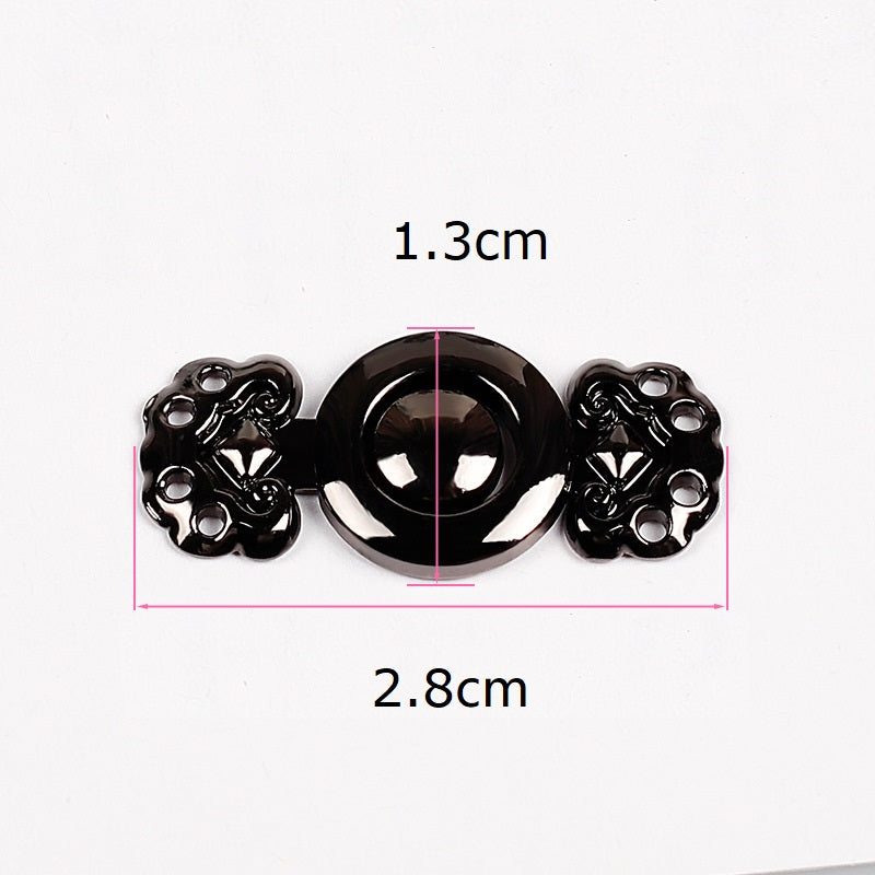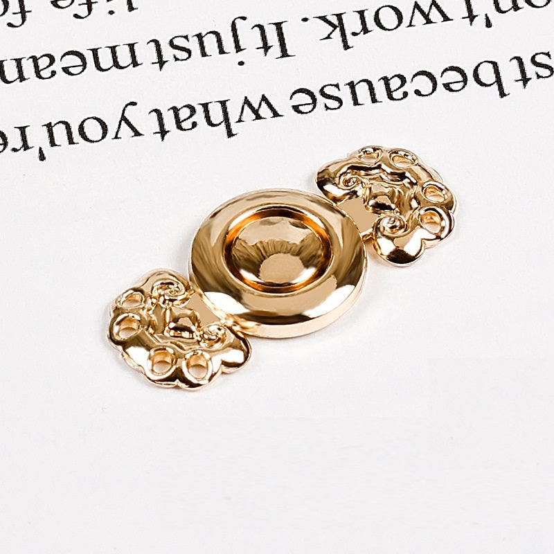 Ovi metalni gumbi par veličine 2.8 cm izvanredan su prikaz tradicionalne kineske izrade. Dizajn sadrži ikonične motive oblaka i Ruyi, koji simboliziraju sreću i ispunjenje želja u kineskoj kulturi. Uzorci oblaka su elegantno zakrivljeni, dok su Ruyi elementi detaljno izrađeni, s glatkim rubovima i sjajnim završetkom. Izrađeni od visokokvalitetnog metala, nisu samo izdržljivi već posjeduju i profinjenu eleganciju. Jedinstveni dizajn "roditelj-dijete" omogućuje svestranu upotrebu, bilo za kopčanje odjeće poput tradicionalnih kineskih haljina ili za dodavanje ukrasnog detalja modernoj odjeći. Lako se pričvršćuju i poboljšat će ukupni estetski dojam, donoseći dašak klasičnog kineskog šarma svakom outfitu. Savršeni su za one koji cijene ljepotu i kulturni značaj tradicionalnih kineskih elemenata, ovi gumbi su stilski i značajan dodatak svakoj garderobi.