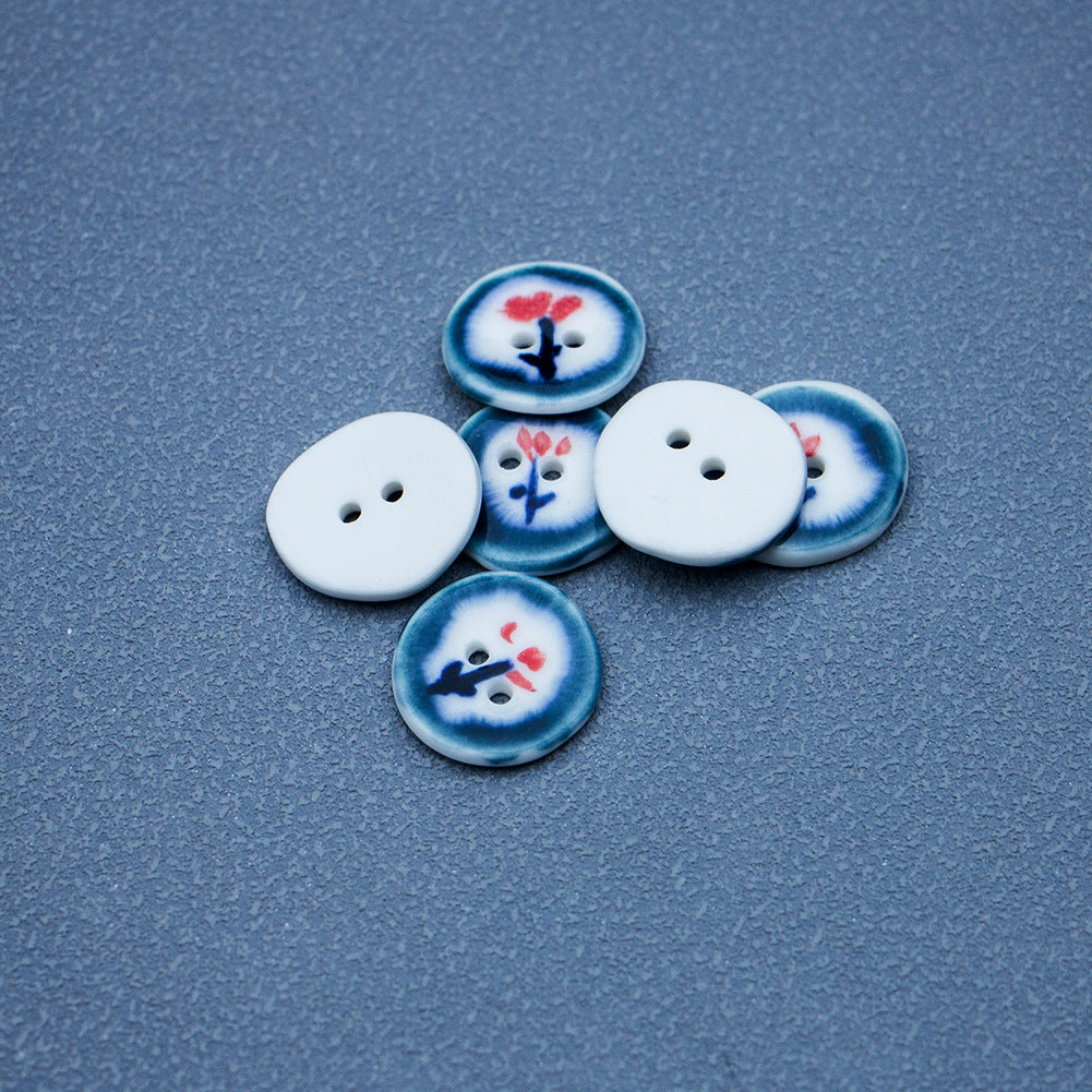 Keramički materijal osigurava glatku i izdržljivu završnu obradu. Dvije rupe čine ih praktičnima za šivanje na razne tkanine, bilo za odjeću poput haljina i bluza ili za dodatke poput torbi i šešira. Ovi gumbi mogu odmah podići estetiku predmeta, dodajući dašak elegancije i ručno izrađenog šarma. Pogodni su za moderne i vintage inspirirane dizajne. Ručno oslikani detalji čine svaki gumb jedinstvenim, omogućujući vam da izrazite svoju individualnost i kreativnost. Bilo da ste profesionalni dizajner ili entuzijast za DIY, ovi gumbi će vaše kreacije učiniti posebnima.