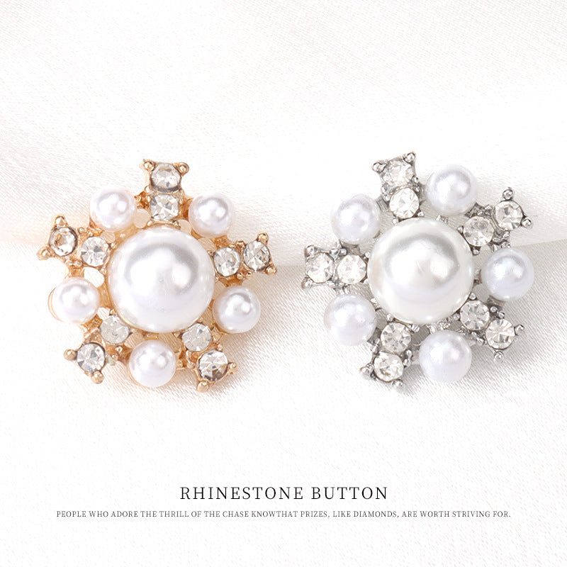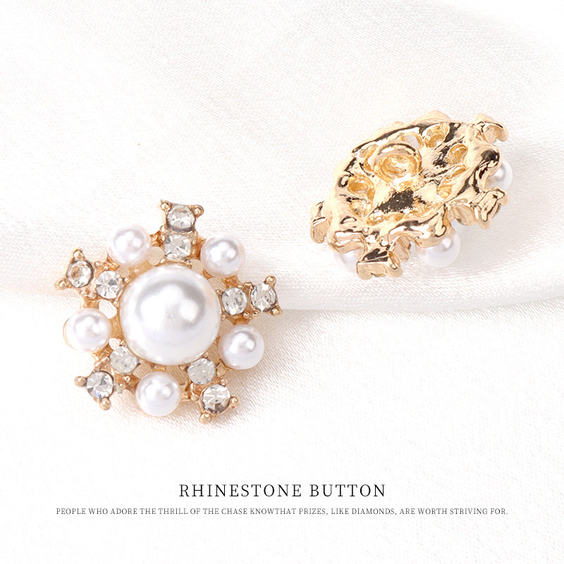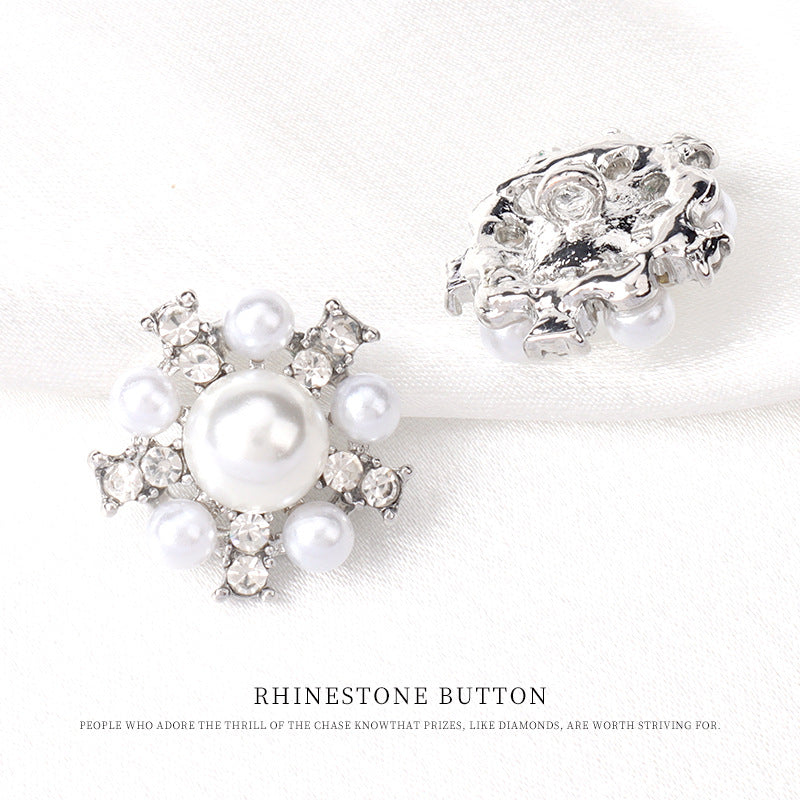 21mm Bijeli biserni metalni gumb s dijamantnim umetkom za krzneni kaput 8 komada