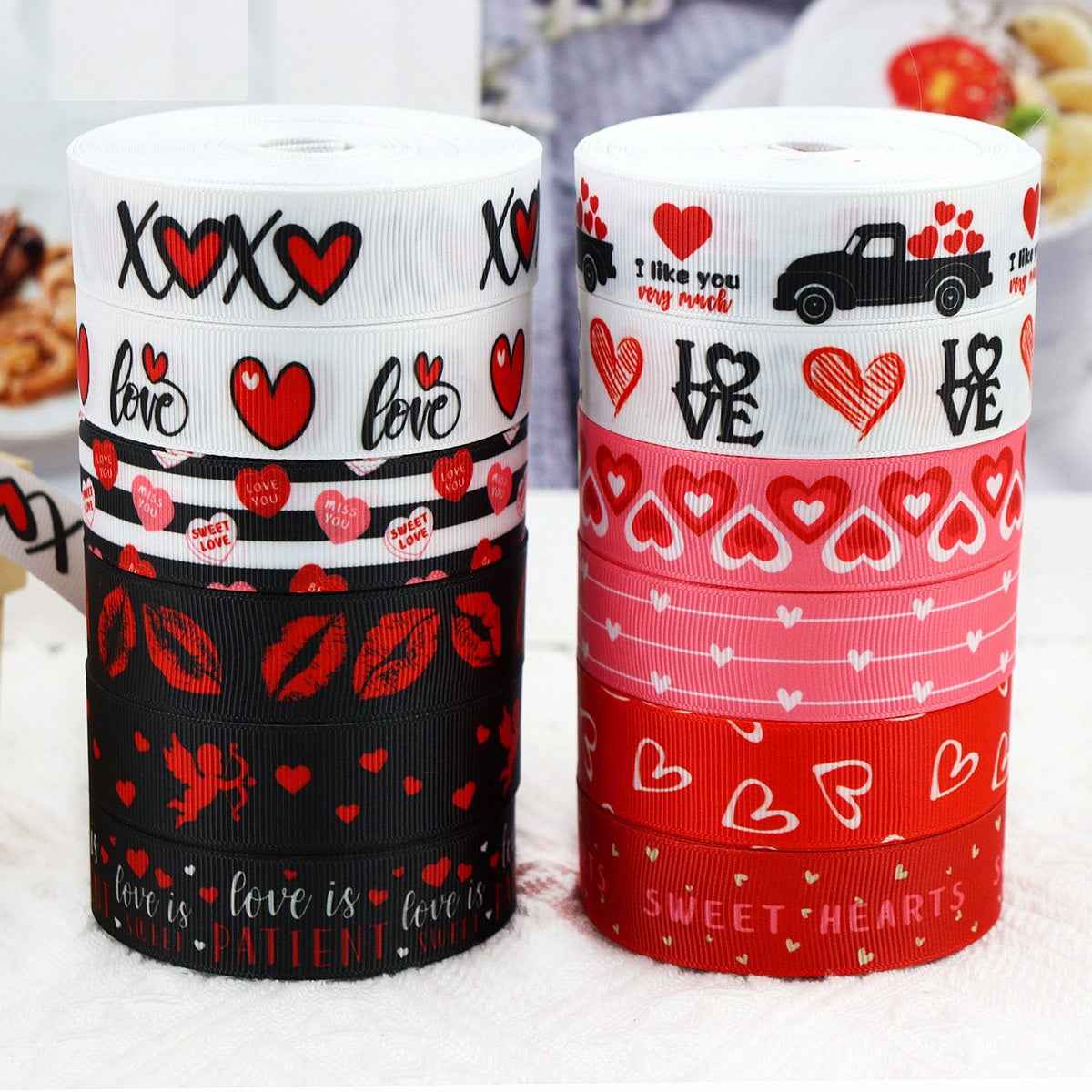 Uljepšajte svoje proslave Valentinova s našim setom vrpci tematski vezanih uz Valentinovo širine 22 mm. Ove vrpce savršene su za umatanje poklona, dekoracije i kreativne projekte kojima je potreban romantični dodir. Set uključuje razne dizajne koji hvataju bit ljubavi i naklonosti, s motivima srca i slatkim porukama koje odražavaju duh praznika. Izrađene od visokokvalitetnih materijala, ove vrpce su izdržljive i spremne dodati svečani štih vašim događajima. Idealne za vjenčanja, godišnjice ili jednostavno za izražavanje ljubavi na Valentinovo, naše vrpce su divan dodatak svakom poklonu ili dekoraciji.