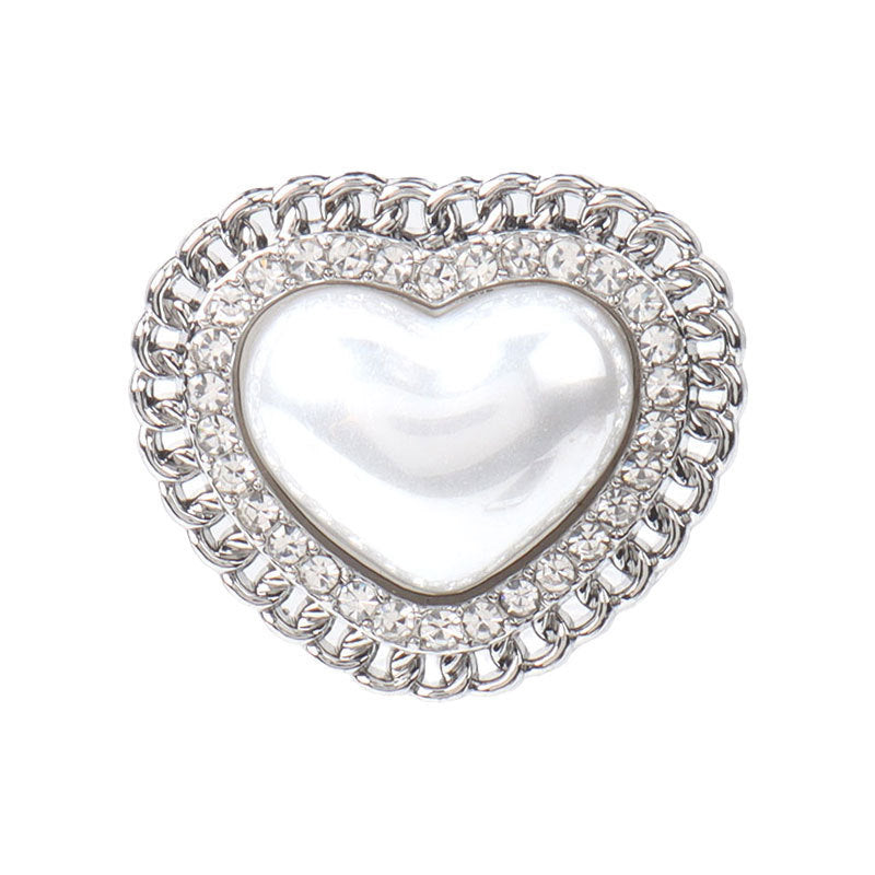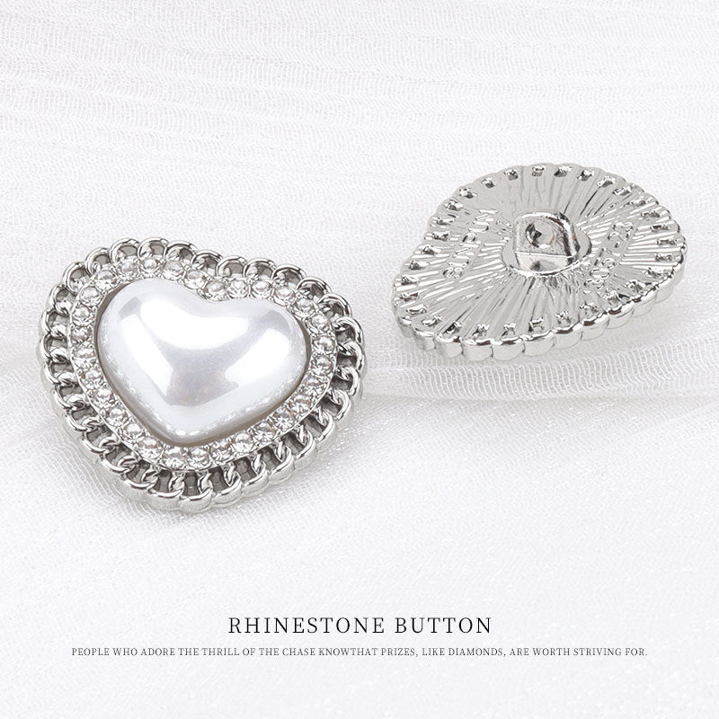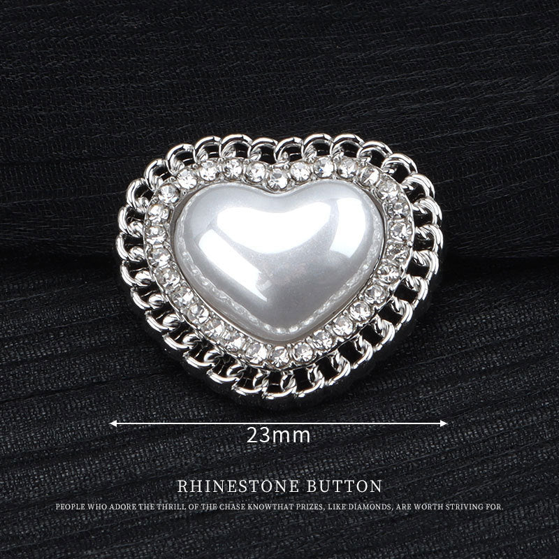 23mm srebrni gumb u obliku srca s biserima i metalnim cirkonima - Gumbi za ženske džempere i jakne 6 kom
