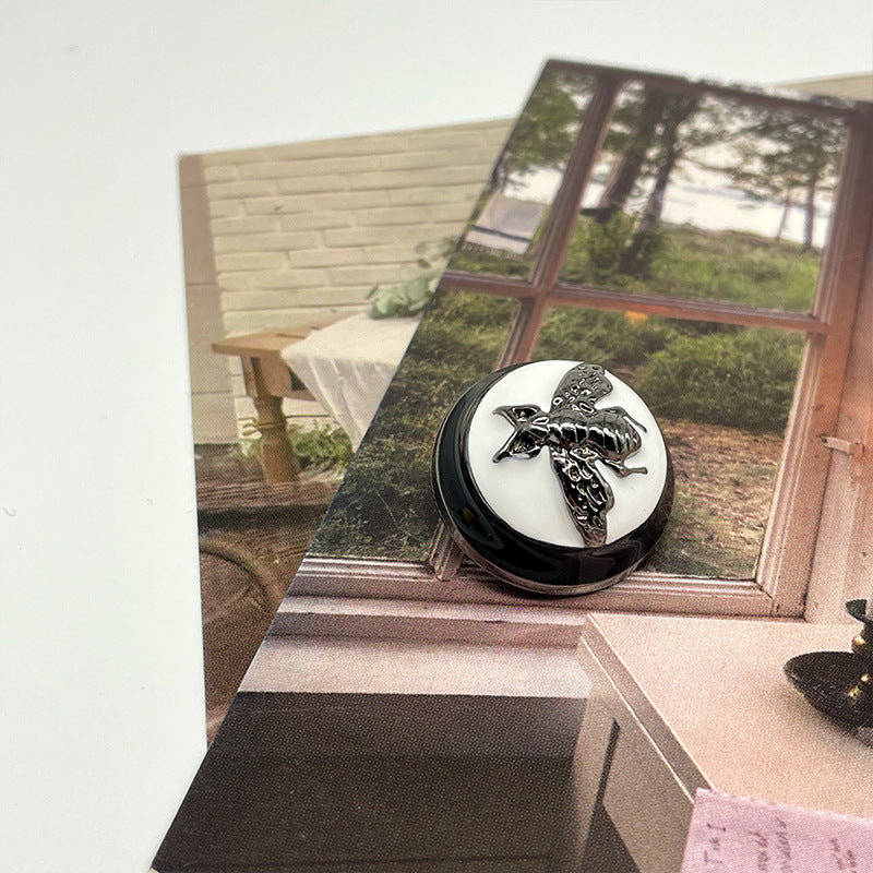 Ovi okrugli metalni gumbi promjera 23 mm savršen su spoj vintage i mode. Gumbi imaju detaljno dizajniran uzorak pčele, što im daje jedinstven i šarmantan izgled. Stil inspiriran vintageom čini ih prikladnima za različite dizajne kaputa, od klasičnih balonera do retro vanjske odjeće. S petljama, lako se šivaju na tkaninu, osiguravajući čvrsto pričvršćenje. Kvalitetna metalna konstrukcija jamči izdržljivost i dugotrajni sjaj. Ovi gumbi ne služe samo kao funkcionalni zatvarači, već i poboljšavaju ukupnu estetiku kaputa. Mogu pretvoriti običan kaput u moderan i upečatljiv komad, omogućujući nositelju da napravi modnu izjavu i istakne se u bilo kojem okruženju.