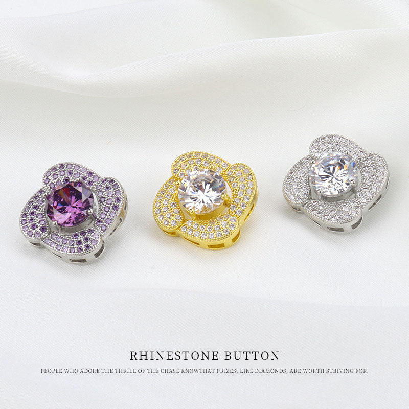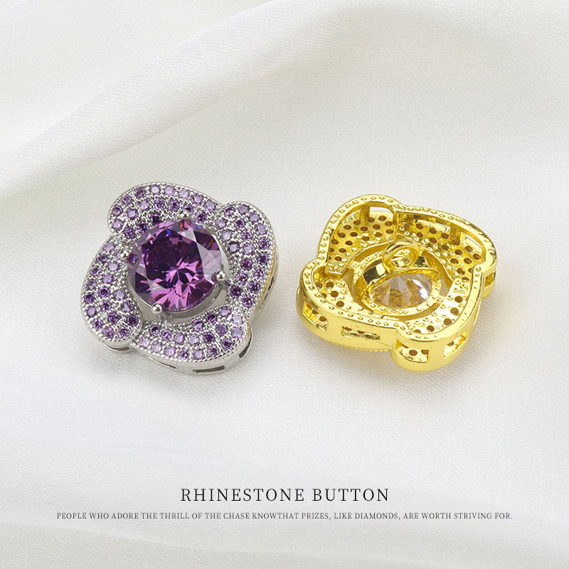 24mm Bijeli Ljubičasti Cirkon Gumb s Metalnom Bazom i Noga 2 komada