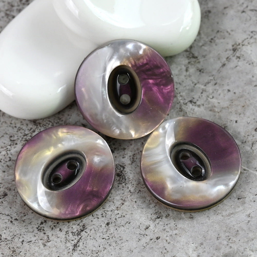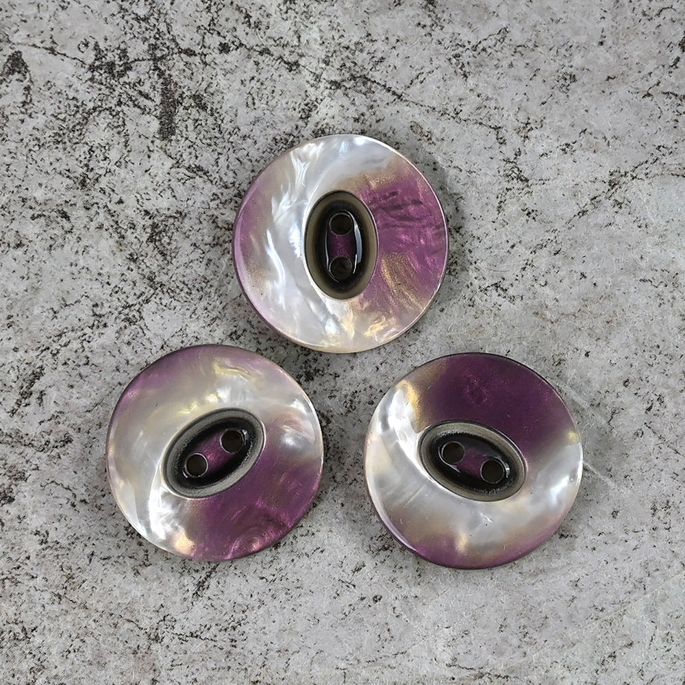 Ovi smolasti gumbi veličine 25/28mm dizajnirani su da dodaju dašak laganog luksuza modnim kaputima. S prekrasnim gradijentom od srebrno-bijele do ljubičaste i bisernim završetkom, zaista su upečatljivi.