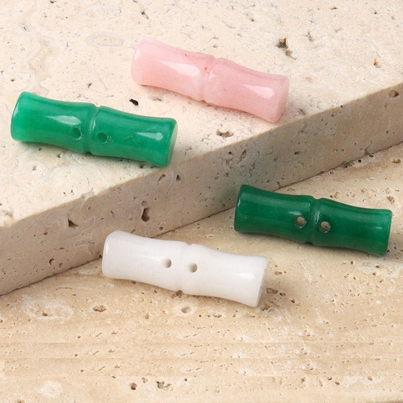 Ovi gumbi promjera 25 mm izrađeni su od prirodnog žada u elegantnom obliku bambusa. Jedinstveni oblik odaje počast ljepoti i simbolici bambusa u kineskoj kulturi. Idealni su za kineski stil vanjske odjeće poput kaputa, kao i za nježni Xiangyunsha cheongsam i tradicionalni Hanfu s gumbima u obliku žabe.