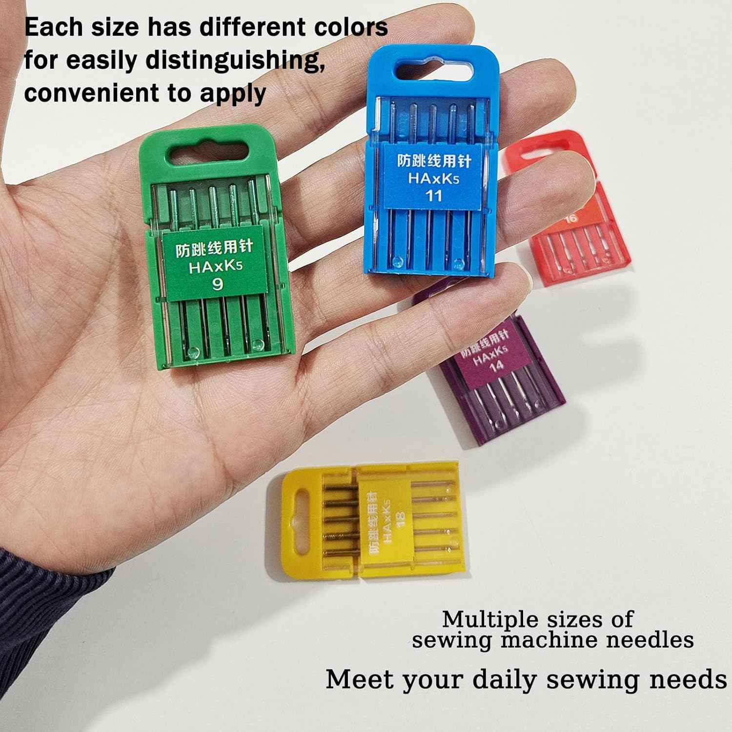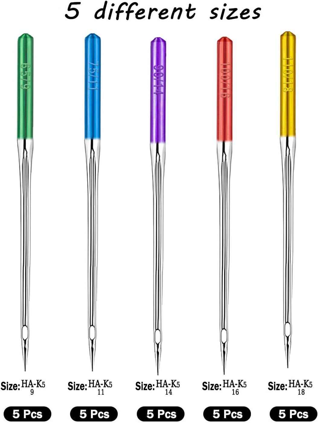 Pakiranje sadrži 25 univerzalnih igala za šivaće mašine redovnog vrha u različitim bojama, veličine su 9, 11, 14, 16, 18, pogodne za razne kućne šivaće mašine.