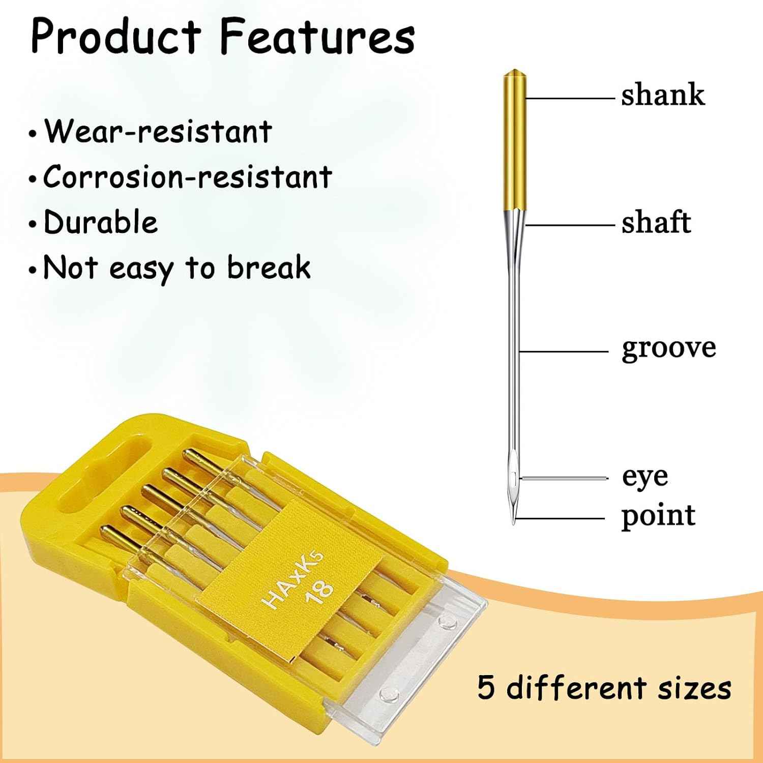 Raznovrsne igle za šivaće mašine, univerzalne igle redovnog vrha kompatibilne sa Singer, Brother, Janome, Pfaff i drugim kućnim šivaćim mašinama, (veličine 9, 11, 14, 16, 18), pakiranje od 5 komada