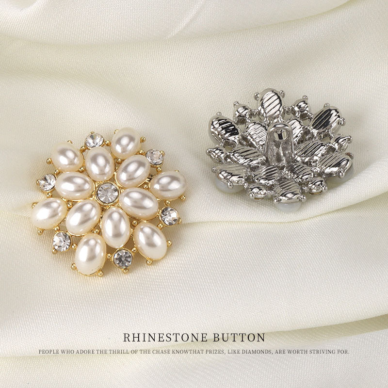 27mm visokokvalitetni zlatni/srebrni metalni gumbi s cirkonima i biserima za ženske vunene kapute i krznene odjevne predmete, 4 komada