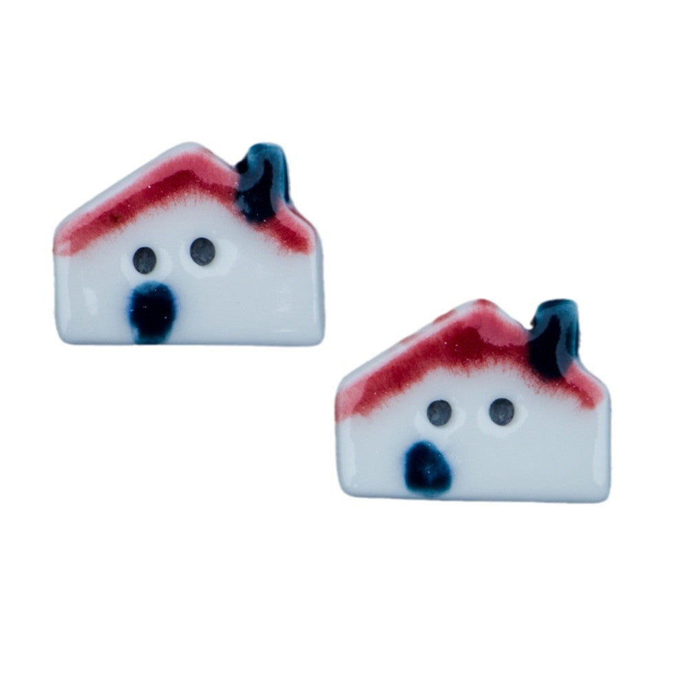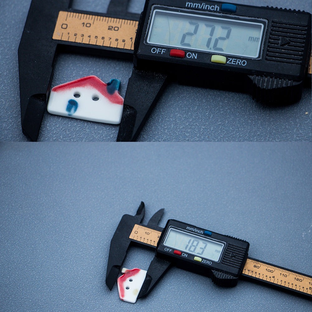 Ovi keramički gumbi dimenzija 27x18 mm izrađeni su u obliku šarmantne kuće s dimnjakom i imaju dvije rupe. Izvrsni su izbor za DIY projekte ručno izrađenog nakita.