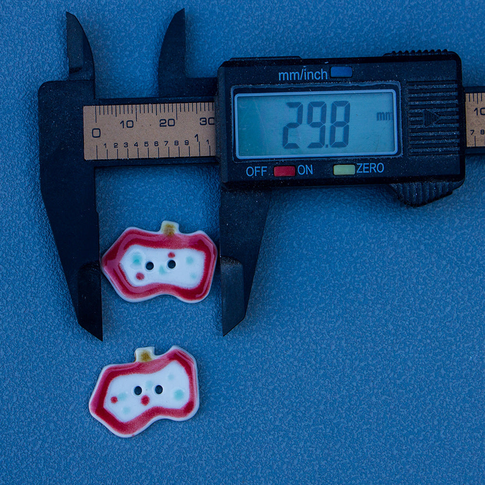 Svijetlo crvena boja jabuke je živa i upečatljiva, čineći ih istaknutima. S rupama dizajniranim za jednostavno pričvršćivanje, mogu se koristiti za ukrašavanje raznih predmeta. Bilo da ih šivate na odjeću poput dječjih haljina ili bluza kako biste stvorili sladak i živahan izgled, ili ih koristite za DIY rukotvorine poput izrade jedinstvenih torbi ili navlaka za jastuke, ovi crveni gumbi u obliku jabuke nude veliku svestranost. Izdržljiv keramički materijal osigurava da mogu izdržati redovitu upotrebu. Oni nisu samo funkcionalni, već i ugodan dekorativni element koji vam omogućuje da izrazite svoju kreativnost i unesete dašak prirodom nadahnutog šarma u svoje kreacije.