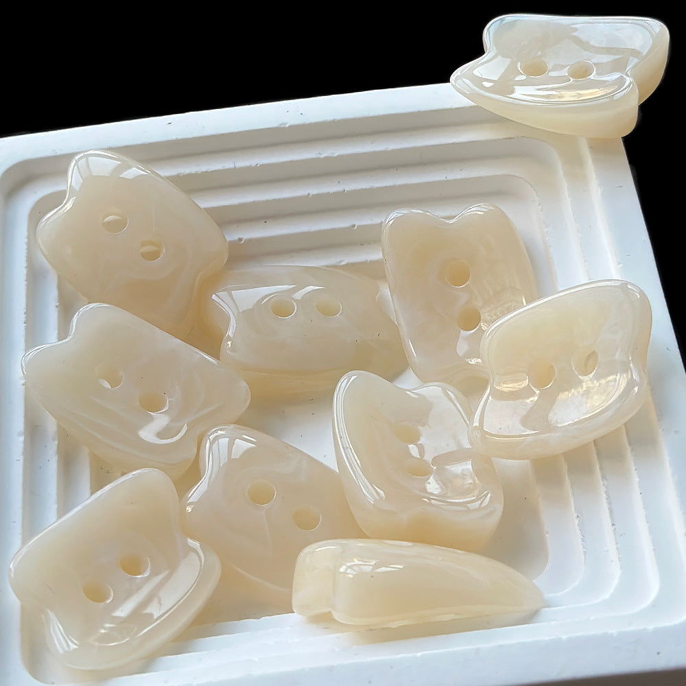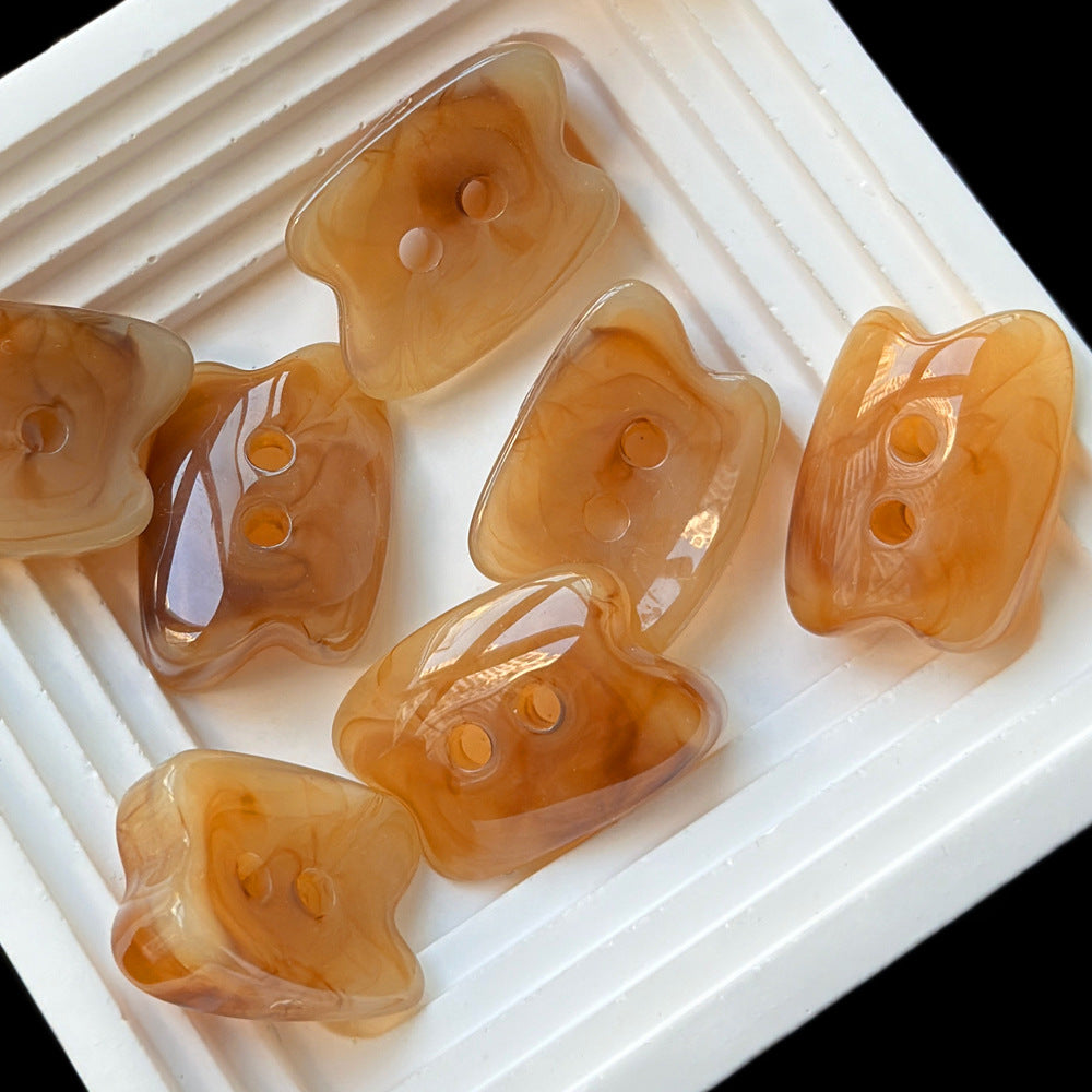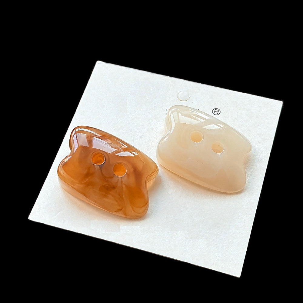 Ova 32x21mm dugmad od smole imaju nepravilan oblik i dva otvora, s jedinstvenom gradijentnom teksturom. Njihov dizajn je savršen za poboljšanje izgleda džempera, kaputa, vjetrovki i odjeće od janjeće vune.