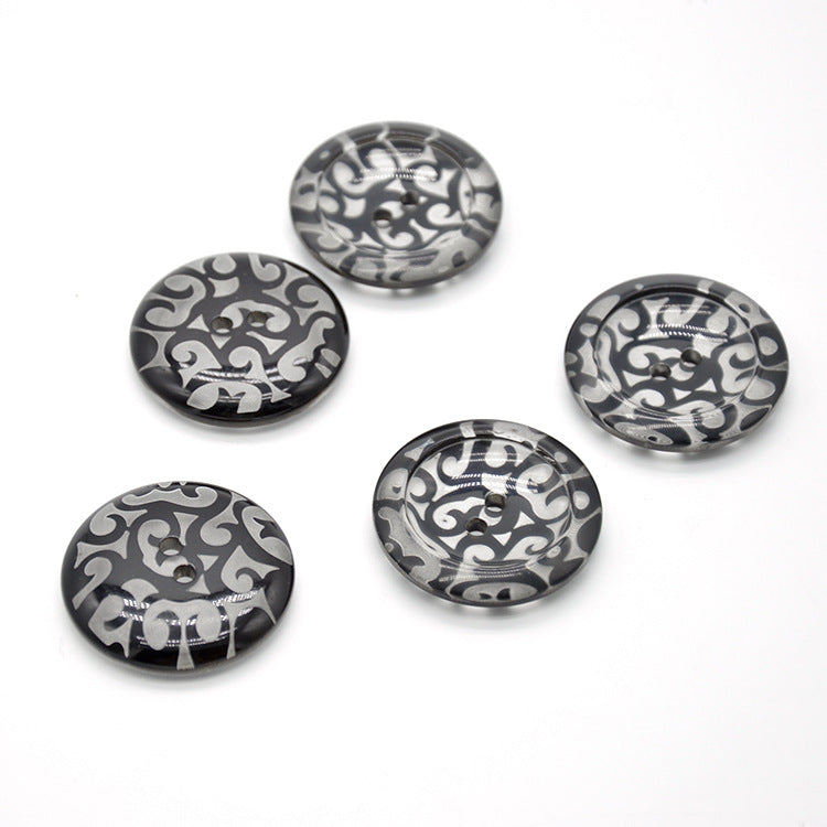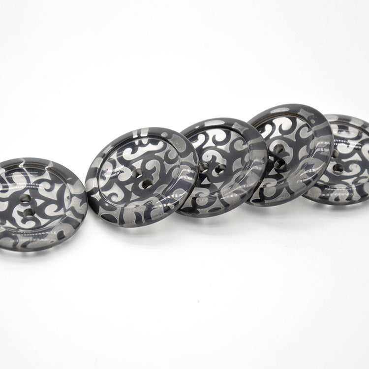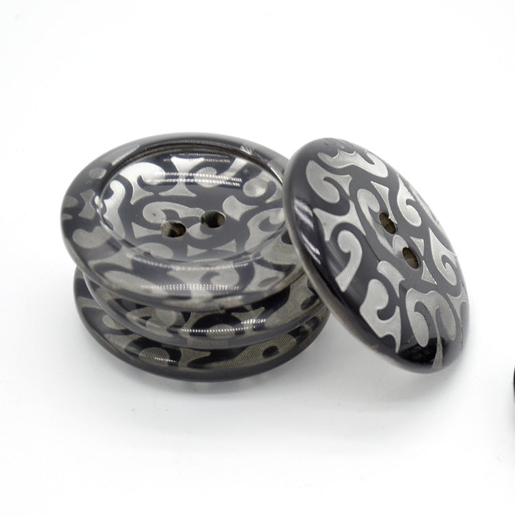 Predstavljamo naše velike crne prozirne okrugle dugmad od smole promjera 38 mm s 2 rupe, savršene za dodavanje sofisticiranog štih vašoj vanjskoj odjeći. Ova dugmad imaju laserski ugravirani dizajn koji dodaje jedinstveni šarm svakom odjevnom predmetu. Izrađena od visokokvalitetne smole, nude izdržljivost i elegantan završetak. Idealna za kapute i jakne, ova dugmad su modni izbor za one koji cijene spoj modernog dizajna i tradicionalne izrade.