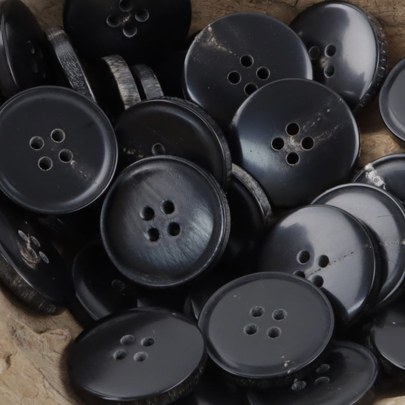 Ovi okrugli crni i smeđi gumbi od prirodnog roga s četiri rupe luksuzan su dodatak svakom jesenjem ili zimskom vunenom kaputu. Izrađeni od pravog roga, nude jedinstvenu i organsku teksturu koja dodaje dašak elegancije i sofisticiranosti. Kombinacija crne i smeđe boje je klasična i svestrana, lako se uklapa u razne boje i stilove kaputa. Četiri rupe osiguravaju sigurno pričvršćivanje i besprijekoran izgled. Prirodni rog poznat je po svojoj izdržljivosti, pa će ovi gumbi izdržati test vremena. Donose rustikalni šarm i toplinu vašoj vanjskoj odjeći, čineći vaš kaput upečatljivim u masi. Idealni su za muške i ženske kapute, ovi gumbi su neizostavni za one koji cijene kvalitetu i stil u svojoj jesensko-zimskoj garderobi.