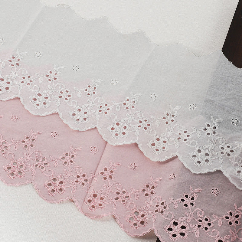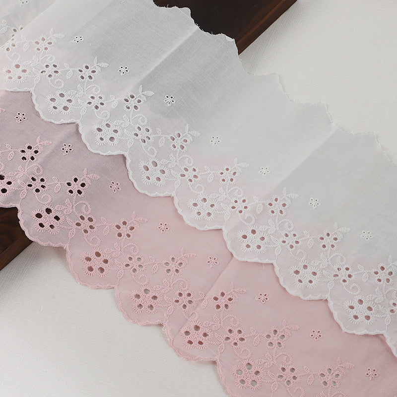 150mm/5.9" bijela i ružičasta pamučna čipka s vezom za rubove odjeće 5 jardi