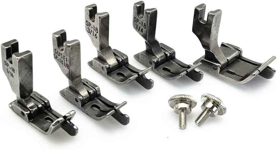 5 veličina/komplet industrijskih stopica za šivaće strojeve s desnim vodičem #SP-18 1/16"+1/8"+3/16"+1/4"+1/2" s 2 vijka za Brother Juki Singer šivaće strojeve s jednom iglom