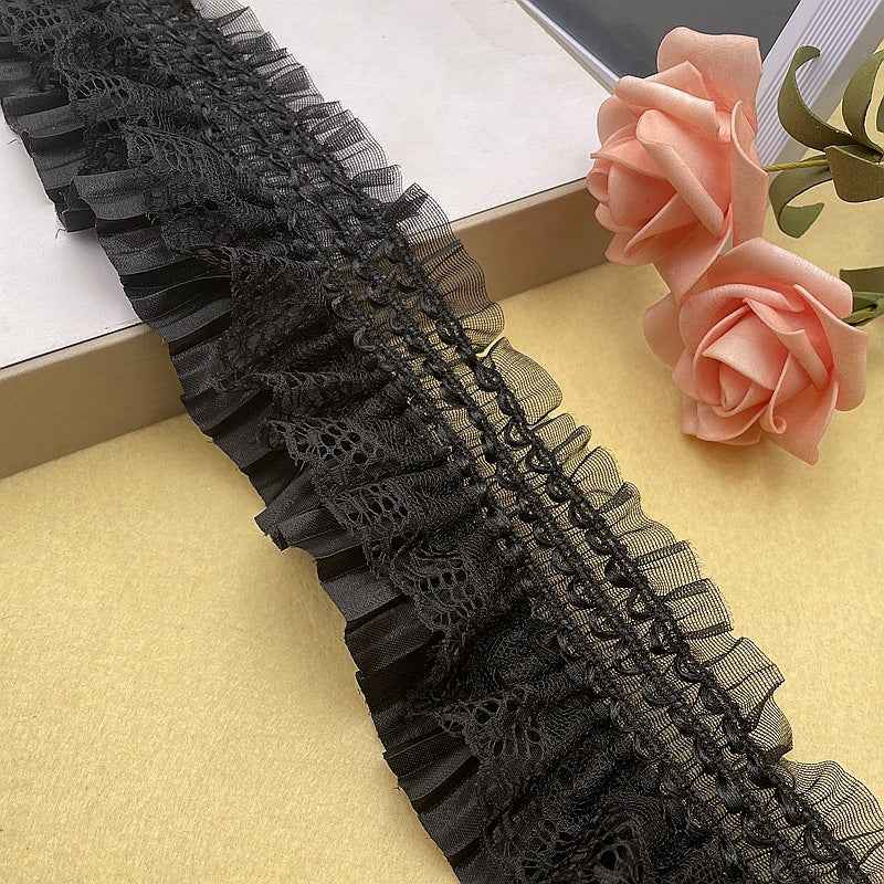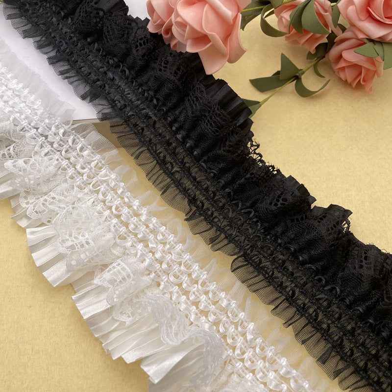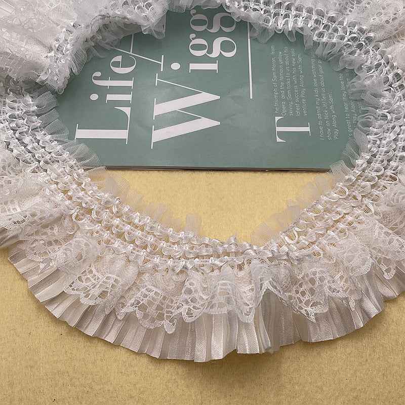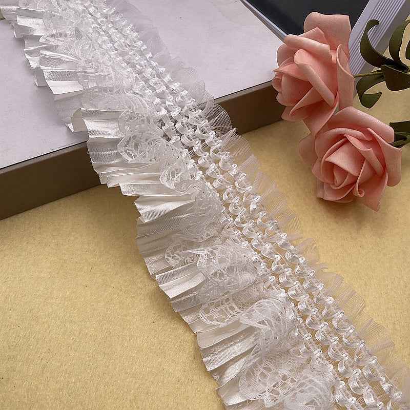 7.5cm spandeks saten čipka naborani rub za Lolita haljine – 10 jardi