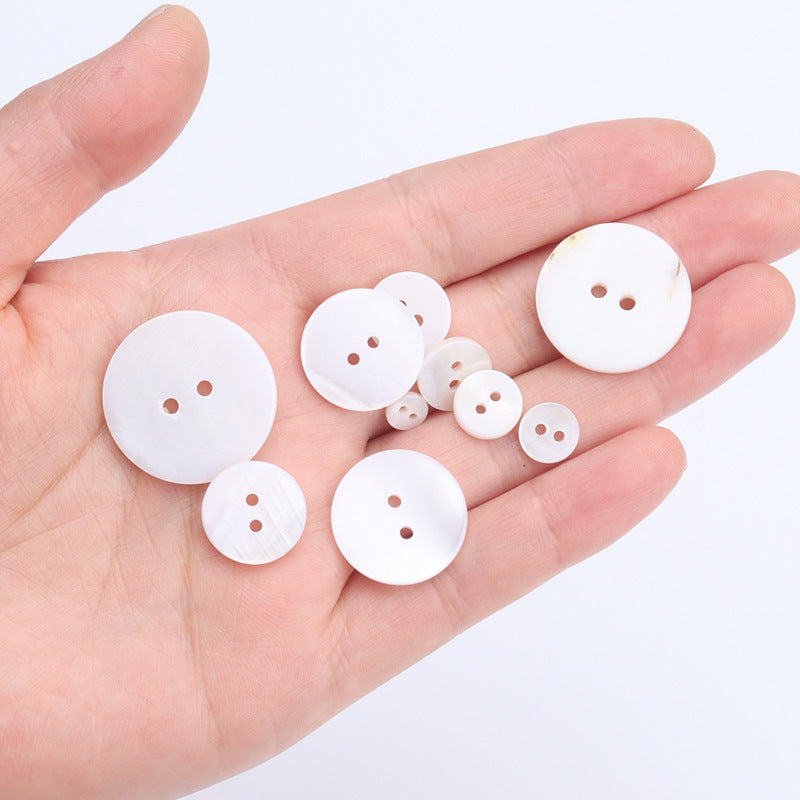 9 - 25mm Okrugli gumbi s dva rupe od bijele biserne školjke - Gumbi za košulje i odijela, pakiranje od 90 kom (9 veličina)