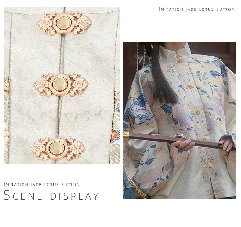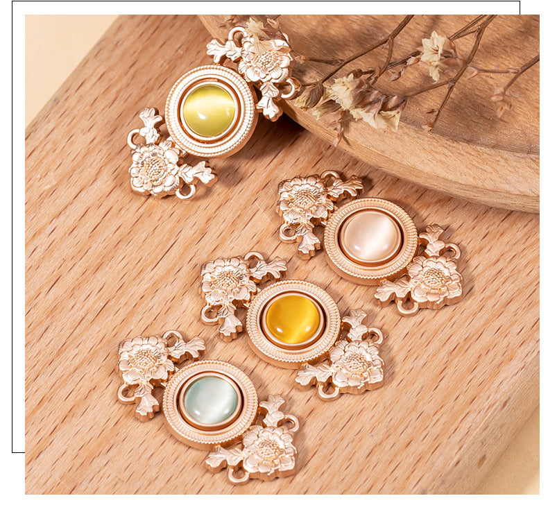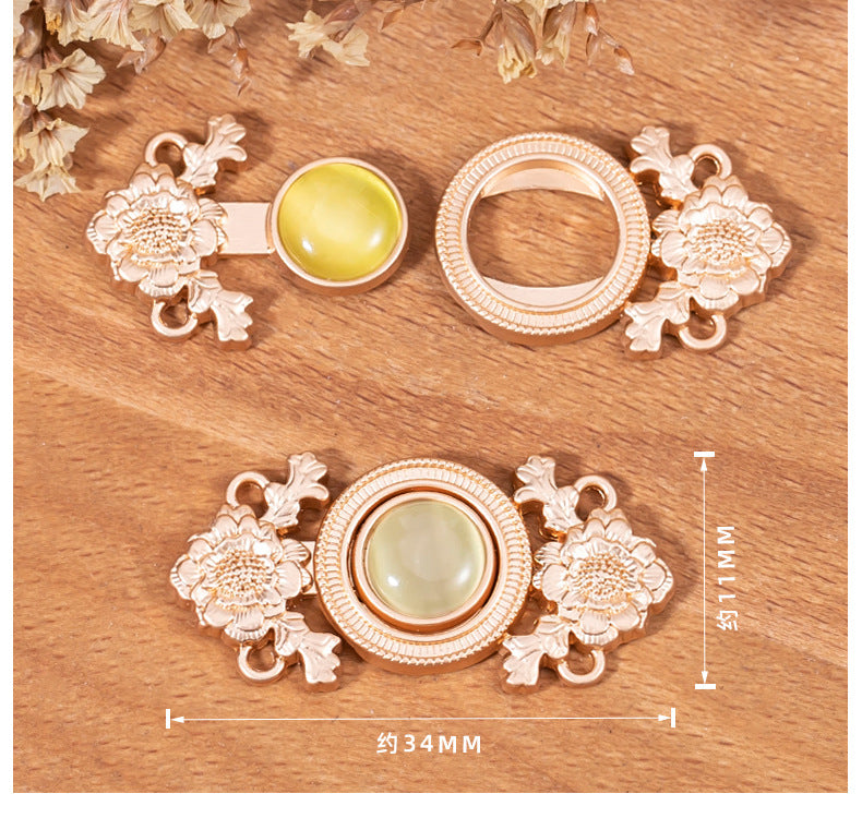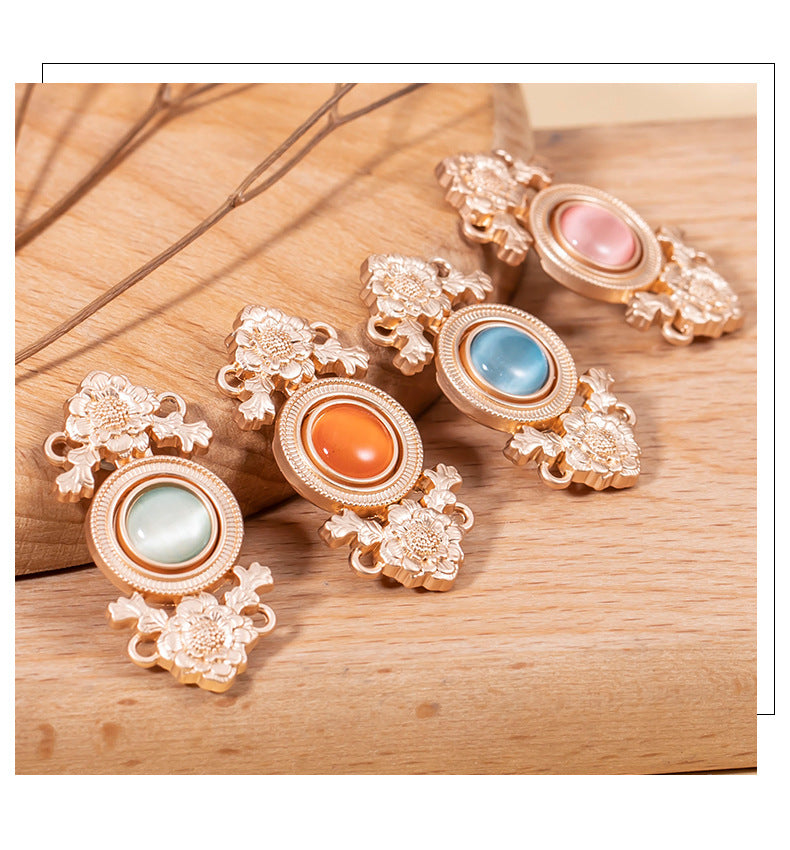 Uronite svoje odjevne predmete u bezvremensku eleganciju istočnog šarma s našim metalnim gumbima u starinskom kineskom stilu s motivom lotosovog cvijeta. Ovi izvanredni gumbi pažljivo su izrađeni kako bi uhvatili bit tradicionalne kineske estetike, s nježnim dizajnom lotosovog cvijeta — simbolom čistoće i spokojstva u kineskoj kulturi. Gumbi su ukrašeni očaravajućim umetkom od kamena "mačje oko" koji dodaje dašak mistike i privlačnosti njihovom izgledu.