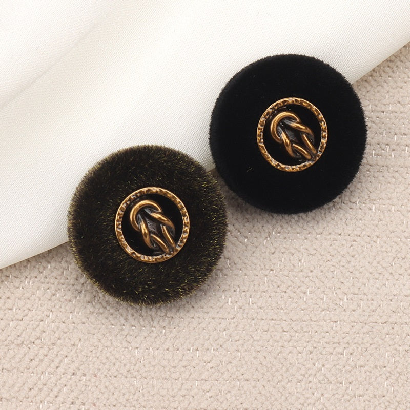 Black & Brown Flocked Metal Combination Buttons with Shank 6pcs