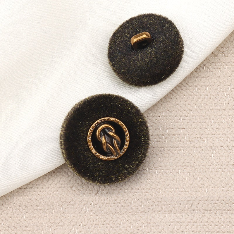 Ovi crni i smeđi gumbi od kombinacije metalnog i flociranog materijala s petljom svestran su i stilski izbor za vašu odjeću. Kombinacija flociranih i metalnih elemenata stvara jedinstvenu teksturu i izgled. Flociranje pruža mekan, luksuzan osjećaj, dok metal osigurava izdržljivost. Zahvaljujući dodatnim petljama, lako se pričvršćuju na različite odjevne predmete poput kaputa, džempera ili bluza. Crne i smeđe boje nude klasičnu i sofisticiranu paletu koja se bez napora može uskladiti s različitim bojama i stilovima tkanina. Bilo da težite ležernom ili formalnijem izgledu, ovi gumbi će dodati dašak elegancije. Oni nisu samo dekorativni, već i praktični, što ih čini izvrsnim dodatkom vašim šivaćim projektima ili za osvježavanje izgleda postojećih odjevnih predmeta.