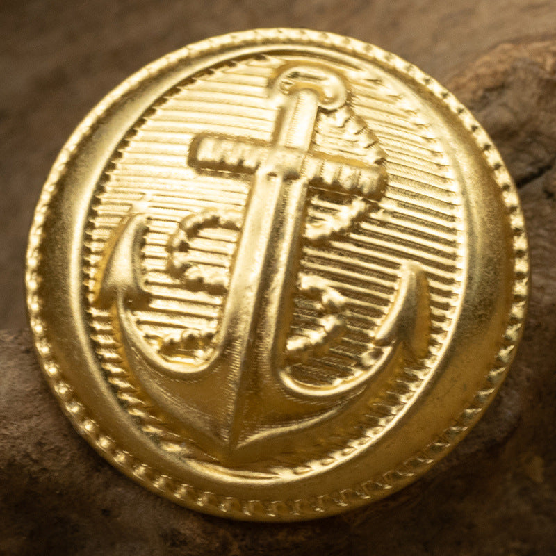 Ovi gumbi s britanskim sidrenim uzorkom, u vintage zlatnoj i srebrnoj boji od mesinga s ručkom prava su remek-djela. Kombinacija klasičnog sidrenog dizajna i luksuznih zlatnih i srebrnih završnih obrada daje ovim gumbima zrak elegancije i sofisticiranosti.