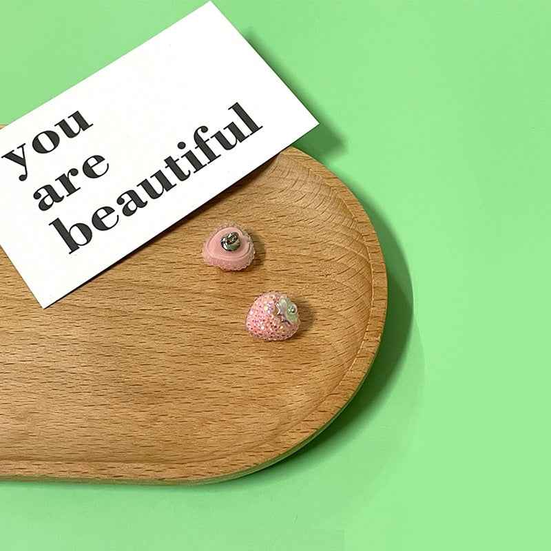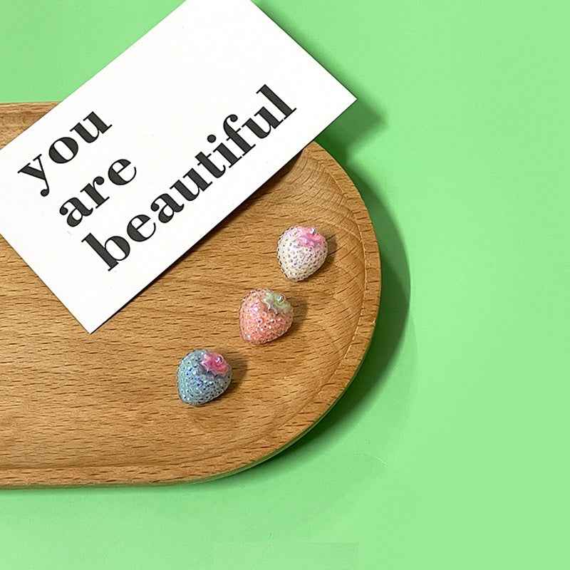Dječji crtani šljokičasti gumbi od smole s jagodom i cvijetom, metalni držač, pakiranje od 60 komada