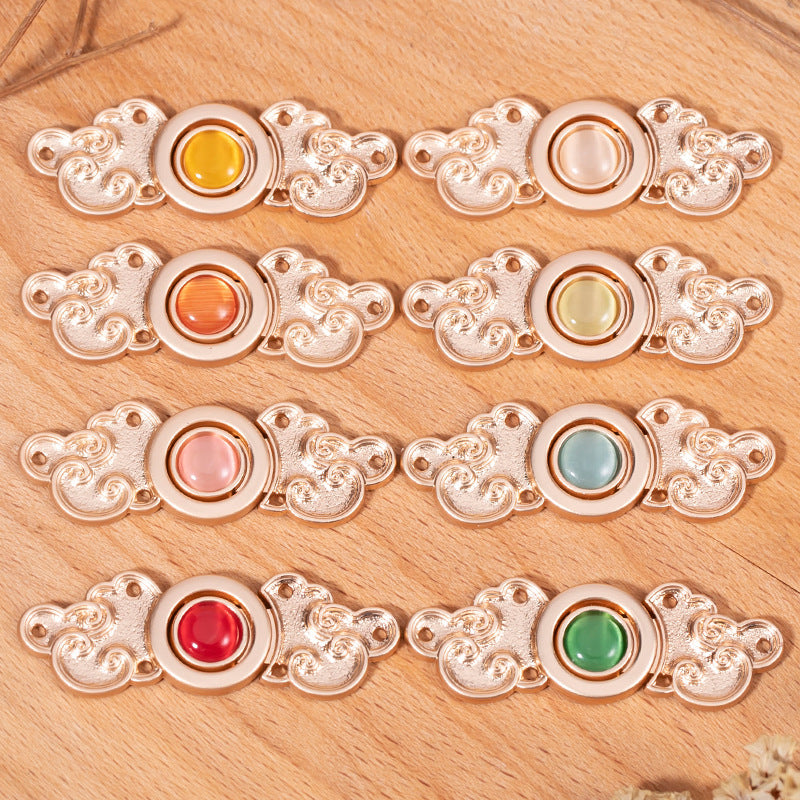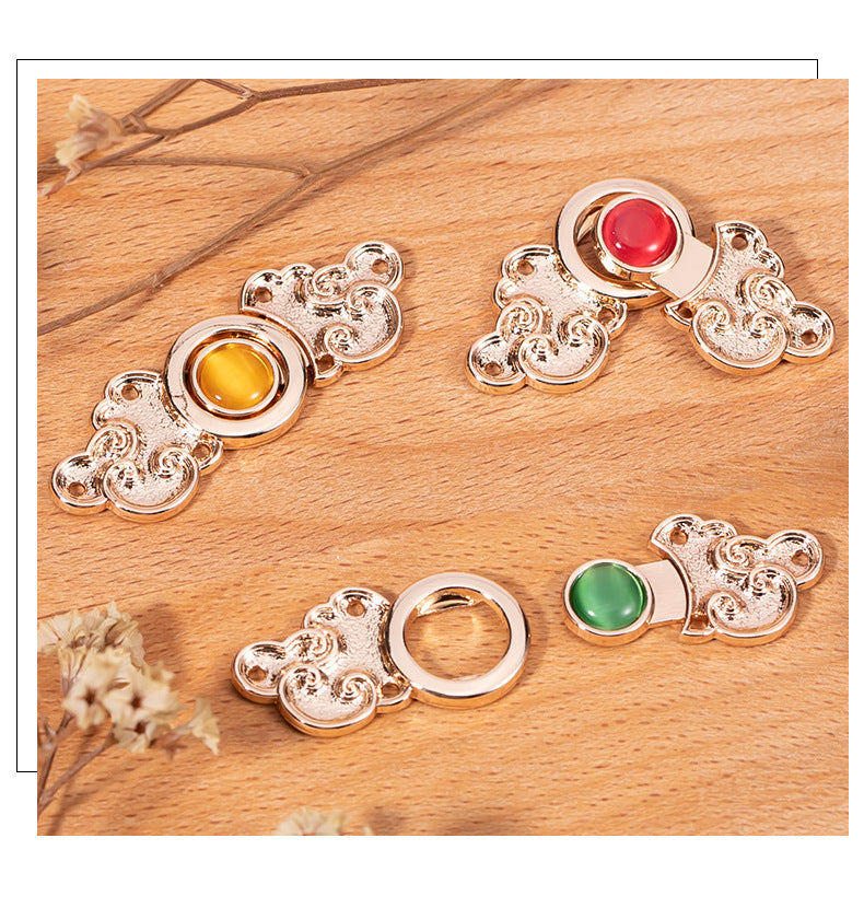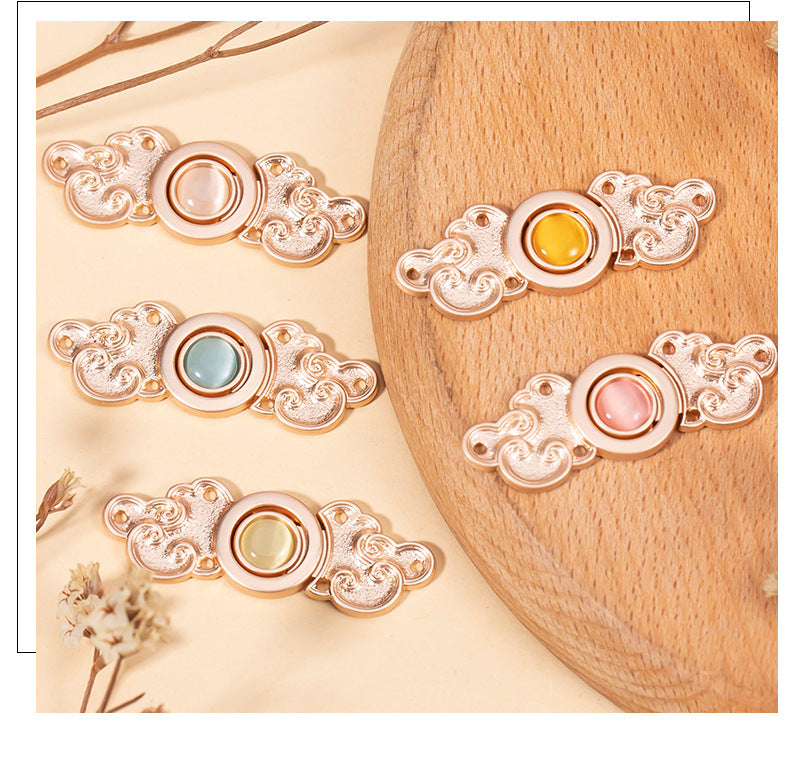 Zakoračite u eleganciju tradicionalne kineske mode s našim kineskim antiknim metalnim gumbima s motivom oblaka i kamena mačjeg oka. Ovi izvanredni gumbi dizajnirani su s detaljnim uzorkom oblaka, koji simbolizira sreću i harmoniju u kineskoj kulturi. Gumbi su ukrašeni očaravajućim kamenjem mačjeg oka koje se presijava pri svakom pokretu, dodajući mistični dodir vašoj odjeći.