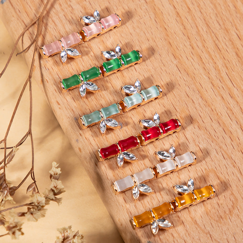 Kineski metalni gumbi s kamenom mačjeg oka u kineskom stilu s dizajnom bambusovog čvora, pakiranje od 6 boja