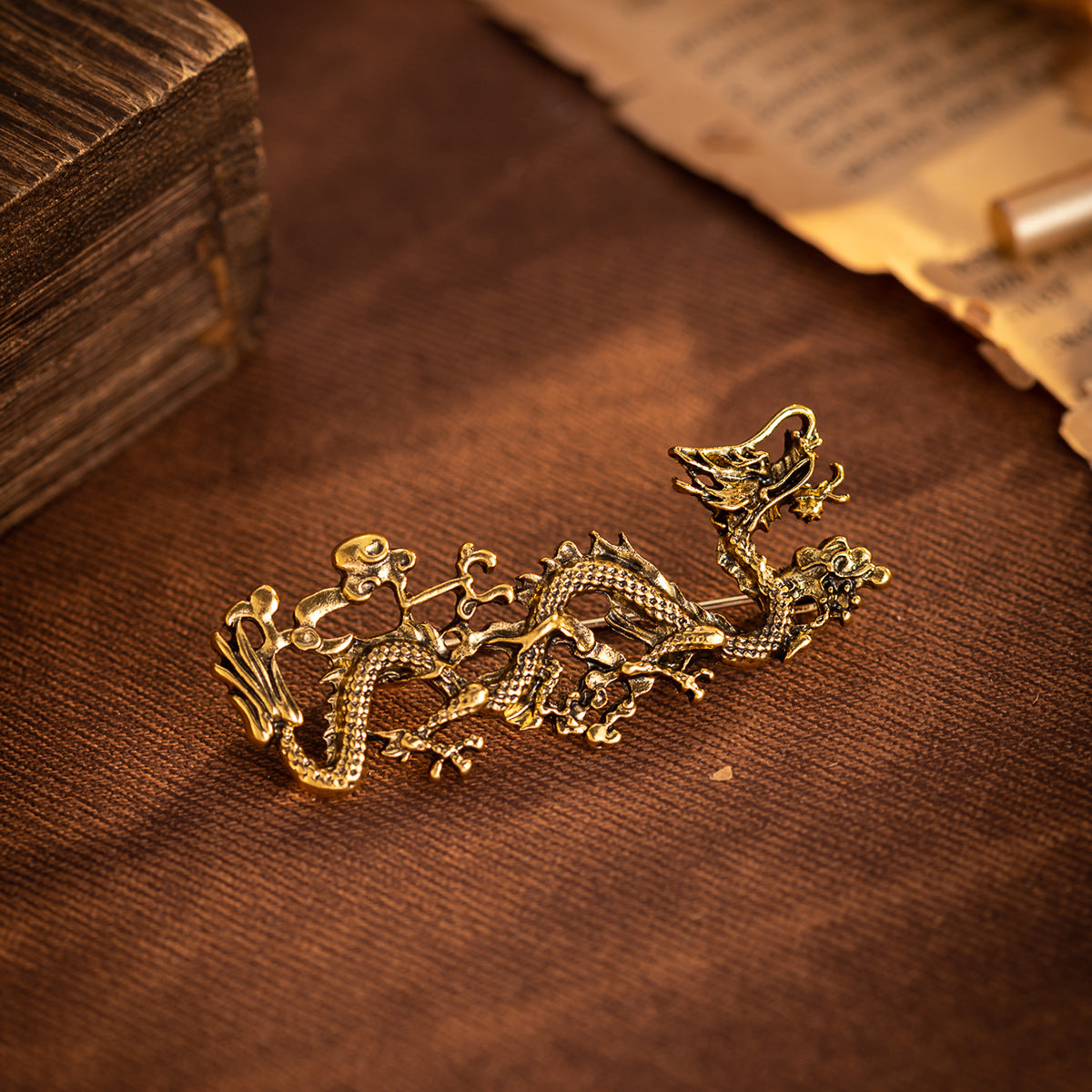 Ovaj jedinstveni vintage etnički stil kineskog broša u obliku zmaja prava je umjetnina. Inspiriran tradicionalnim totemima zmajeva, prikazuje prekrasnu kombinaciju drevnog šarma i modernog dizajna.