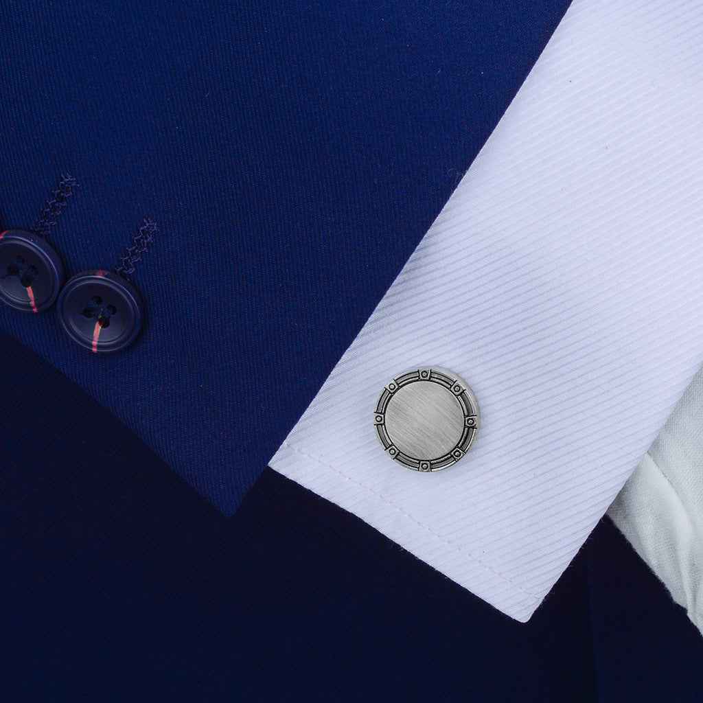 Dodajte bezvremensku sofisticiranost svojoj formalnoj garderobi s ovim elegantnim okruglim manžetnim gumbima s matiranim antiknim srebrnim završetkom. Suptilna teksturirana površina prekrasno hvata svjetlo, a pritom zadržava profinjen, nenametljiv izgled. Savršeni za košulje s francuskim manžetnama, vjenčanja i poslovnu odjeću, ovi svestrani dodaci jednako dobro pristaju uz odijela ili smokinge.