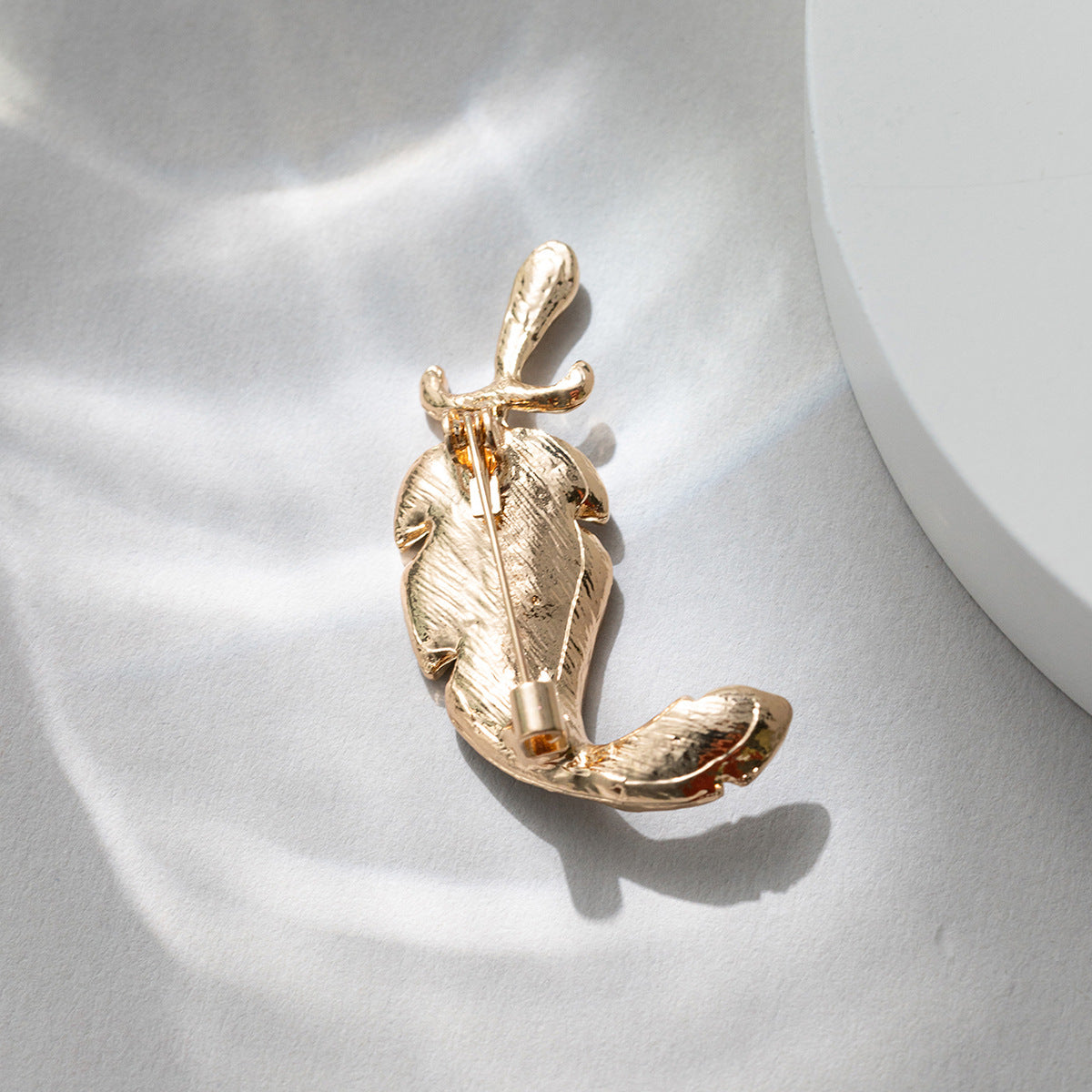 Dizajn perja je nježan i graciozan, dodajući dašak mekoće svakoj odjevnoj kombinaciji. Bilo da je pričvršćena na sako, haljinu ili šal, ova broška sigurno će privući pažnju i ostaviti dojam.