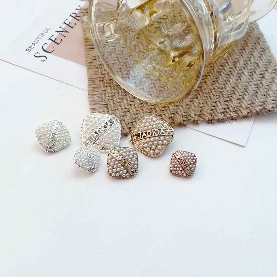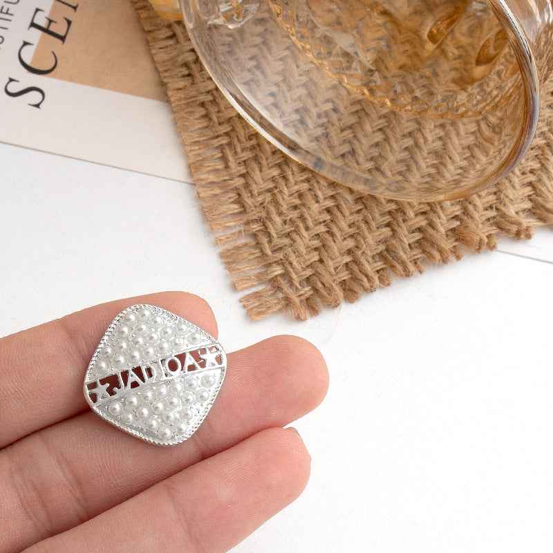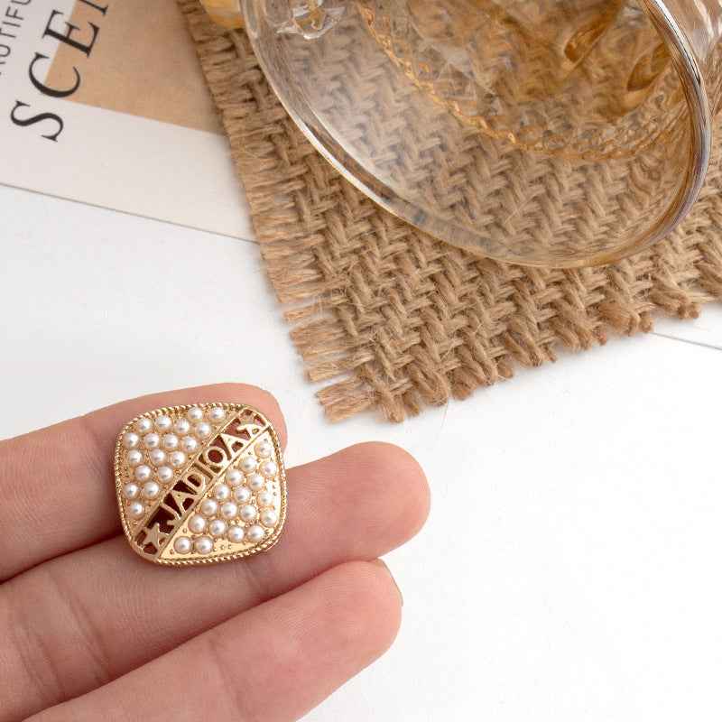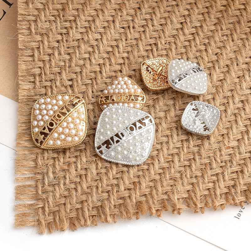 Stilizirani zlatni i srebrni kvadratni metalni gumbi s bisernim umetkom (15mm/18mm/22mm) za ženske francuske chic kapute i jakne, pakiranje od 18 komada (3 veličine)
