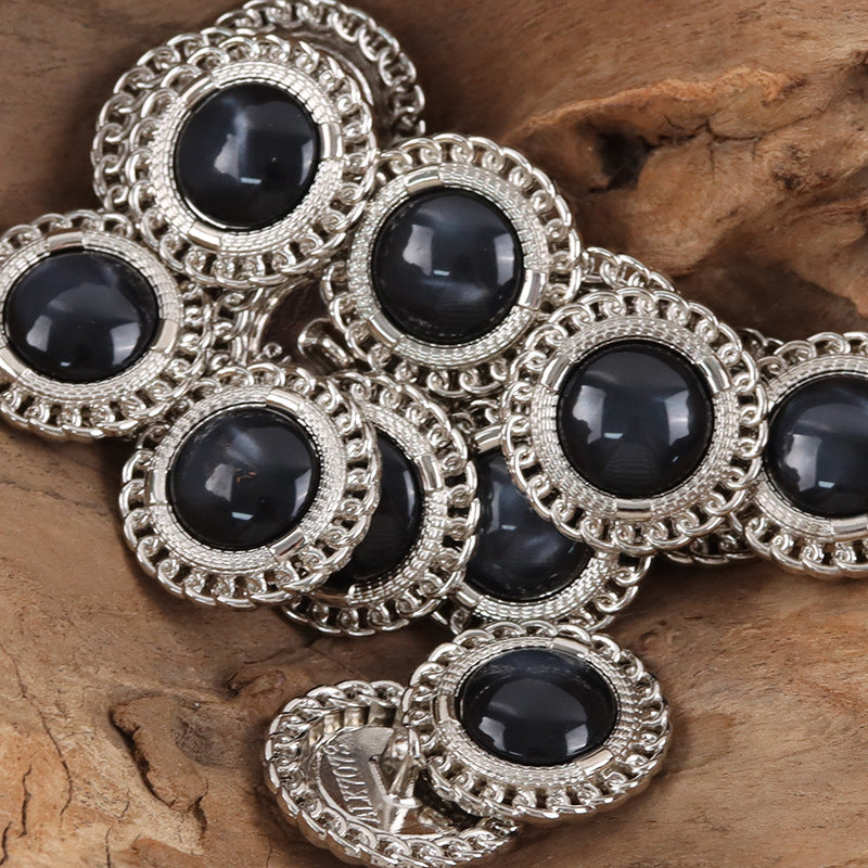 Ovi retro gumbi s urezanim smolastim draguljima i zlatnim rubovima luksuzan su izbor za haljine i kapute u stilu slavnih. Sjajni zlatni rubovi dodaju dašak raskoši i elegancije, stvarajući zapanjujući kontrast. Urezani smolasti dragulji oponašaju izgled dragocjenih kamenja, dajući bogat i glamurozan izgled. Izrađeni od visokokvalitetnog metala, izdržljivi su i čvrsti. Jedinstveni dizajn čini ih upečatljivim modnim dodatkom koji može odmah podići izgled bilo kojeg odjevnog predmeta. Bilo da je riječ o formalnom događaju ili posebnoj prigodi, ovi gumbi dodaju dašak sofisticiranosti i šarma. Savršeni su za one koji žele istaknuti svoj modni izbor, dodajući dašak luksuza i retro glamura svojim haljinama i kaputima, čineći nositelja pravom zvijezdom.