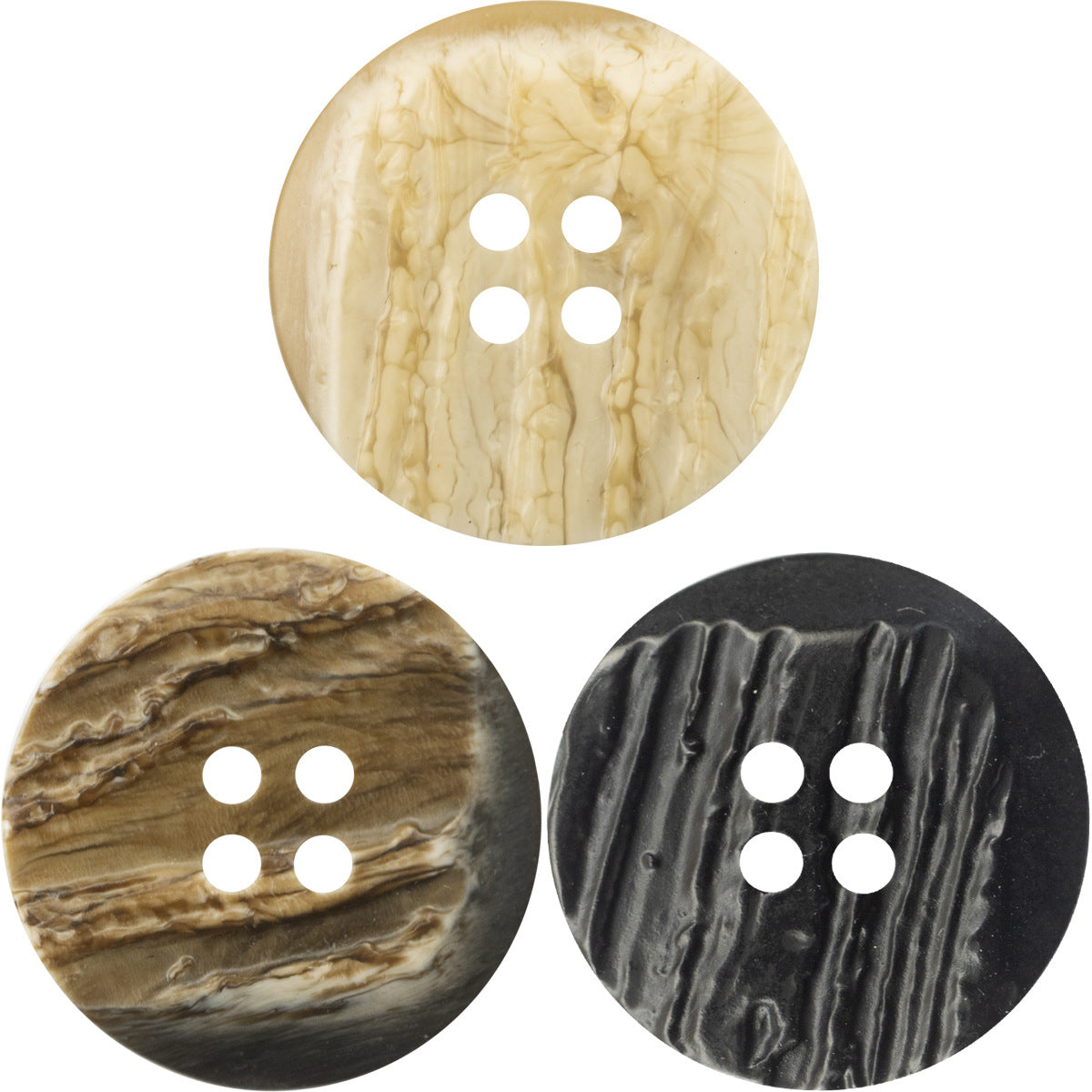 Izrađeni od visokokvalitetne smole, ovi gumbi nisu samo lijepi već i izdržljivi. Smola je materijal poznat po otpornosti na habanje, osiguravajući da će ovi gumbi izdržati zahtjeve redovite upotrebe. Mogu se ušiti na tkanine bez straha od loma ili gubitka oblika. Smola također omogućuje preciznu reprodukciju teksture kore drveta, rezultirajući visokokvalitetnim završetkom.