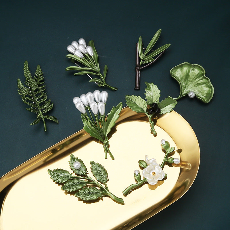 Korejska moda zelena 3D broška list kreativni biljni biserni pin 8 komada