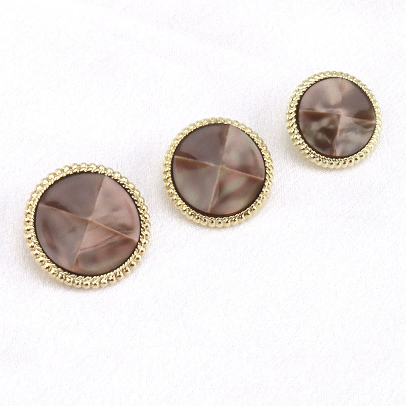 Ovi gumbi veličine 17,5mm - 22,5mm dizajnirani su da dodaju dašak luksuza vašoj vanjskoj odjeći. Izrađeni od kombinacije smole i metala, imaju jedinstveni dvo - tonski dizajn. Dio od smole prikazuje prekrasan biserni sjaj i fasetirani završetak, koji hvata svjetlo pri svakom pokretu, stvarajući upečatljiv efekt. Metalni dio ne samo da dodaje izdržljivost, već i dašak elegancije. Gumbi dolaze s držačima, što ih čini lakima za šivanje na kapute ili jakne. Bilo da se radi o modernom baloneru ili udobnoj zimskoj jakni, ovi gumbi će poboljšati ukupni izgled. Njihov raspon veličina savršen je za različite stilove vanjske odjeće, čineći ih neizostavnima za one koji cijene visokokvalitetne detalje i modni izgled.