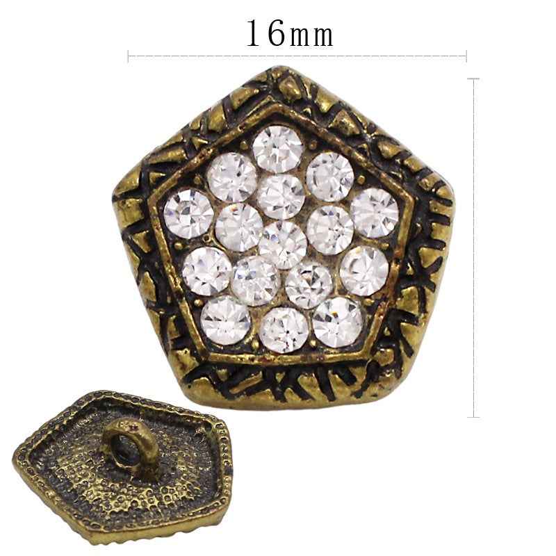 Napravite upečatljivu izjavu s ovim privlačnim metalnim gumbima u obliku pentagona i ovalnog oblika, ukrašenim blistavim kristalnim detaljima. Savršeni za dodavanje luksuznog dodira odjeći, dodacima i DIY modnim projektima.