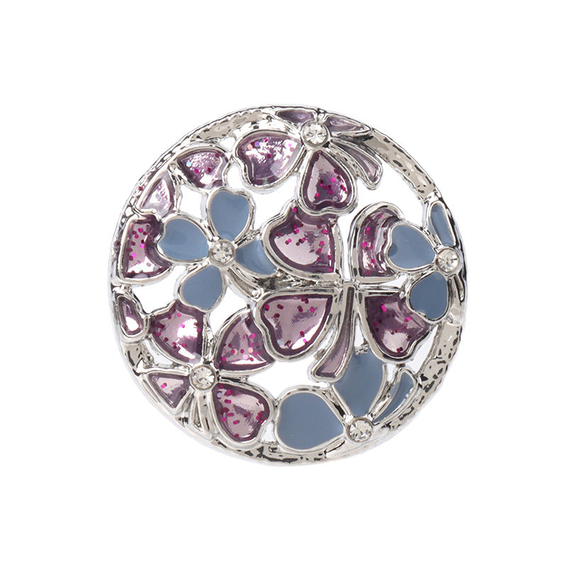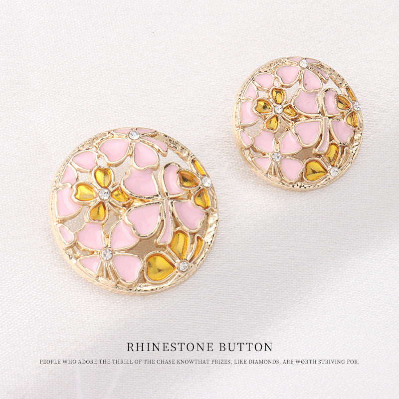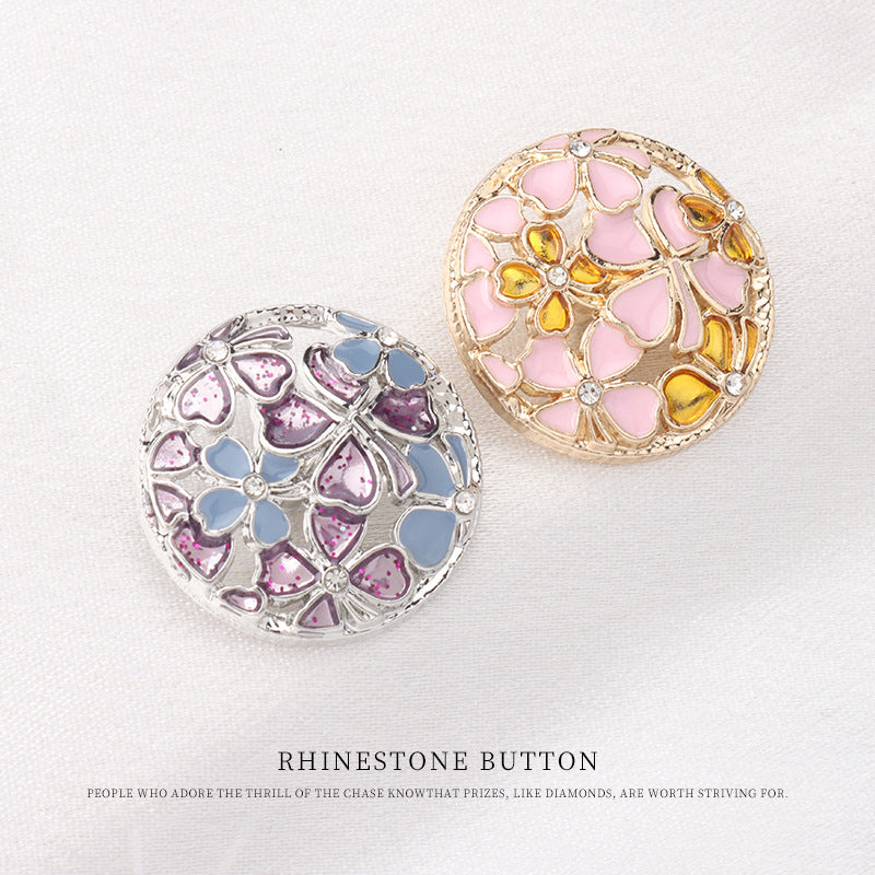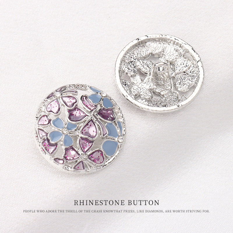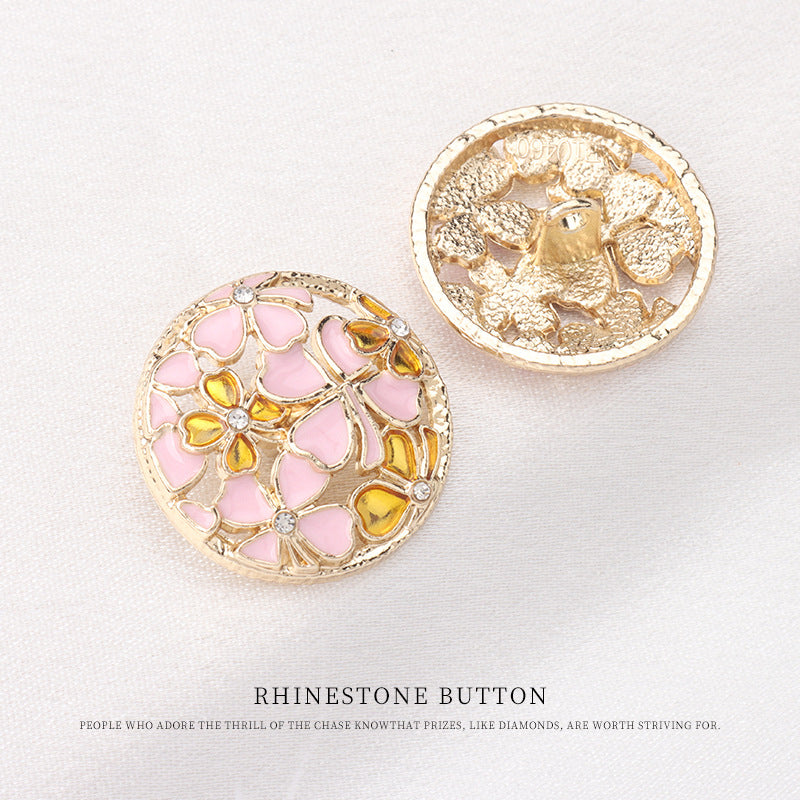 Ovi gumbi veličine 18/22mm prava su poslastica. Okrugli oblik daje im klasičan, a opet šarmantan izgled. Izrađeni su od metala s izrezanim dizajnom, što ih čini laganima i dodaje im složen, nježan dodir. Prekrasni cvjetni uzorci dodatno su naglašeni ugradnjom cirkona. Sjaj cirkona privlači pažnju i dodaje dašak glamura. Osim toga, detalji s točkicama ulja u ružičasto-žutoj i ljubičasto-plavoj boji donose živahan i dinamičan osjećaj. Kombinacija ovih boja je jedinstvena i privlačna. Gumbi dolaze s držačima, što ih čini jednostavnim za šivanje na različite odjevne predmete. Savršeni su za haljine, bluze ili jakne, podižući ukupni estetski dojam i ističući odjevni predmet svojim luksuznim i dekorativnim dizajnom.