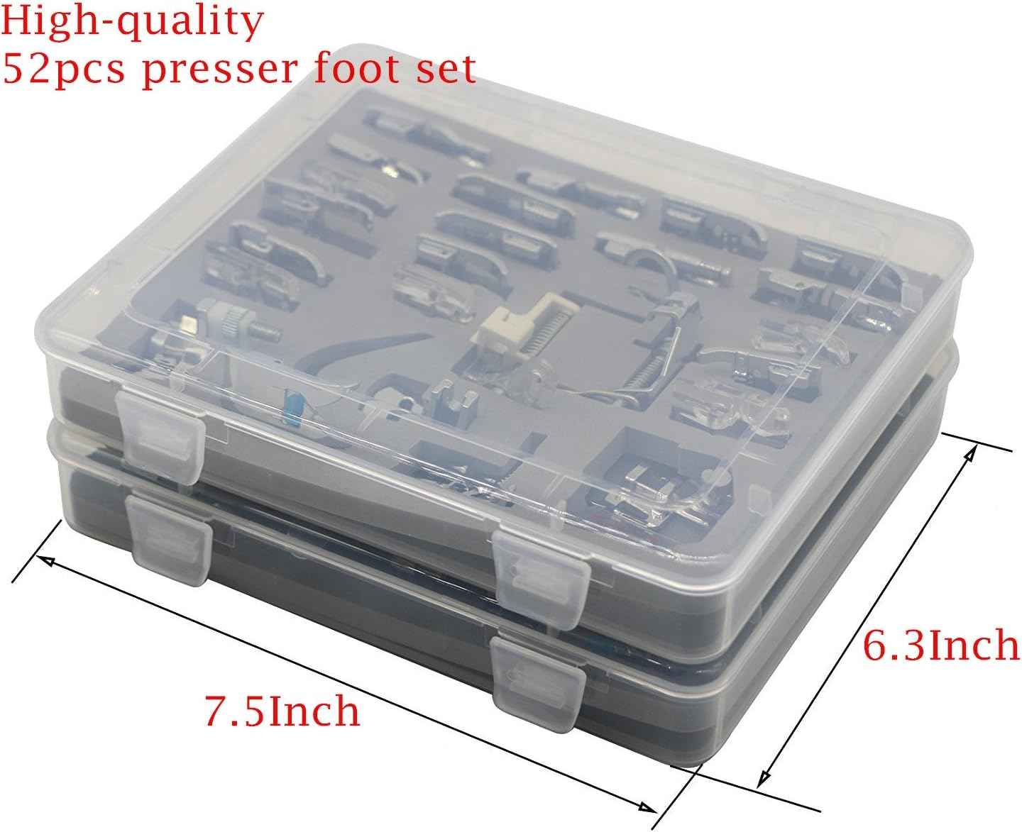 Profesionalni kućni set od 52 komada stopica za šivaće strojeve s plastičnom kutijom za pohranu za Brother, Singer, Janome, Babylock, Toyota, New Home i Kenmore šivaće strojeve s niskim držačem