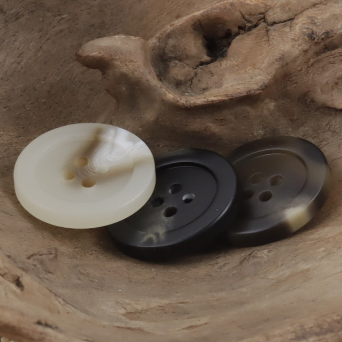 Uljepšajte svoju odjeću i rukotvorine ovim modernim okruglim gumbima od smole s imitacijom roga i četiri rupe. Ovi gumbi nude jedinstven i elegantan izgled koji oponaša teksturu pravog roga.
